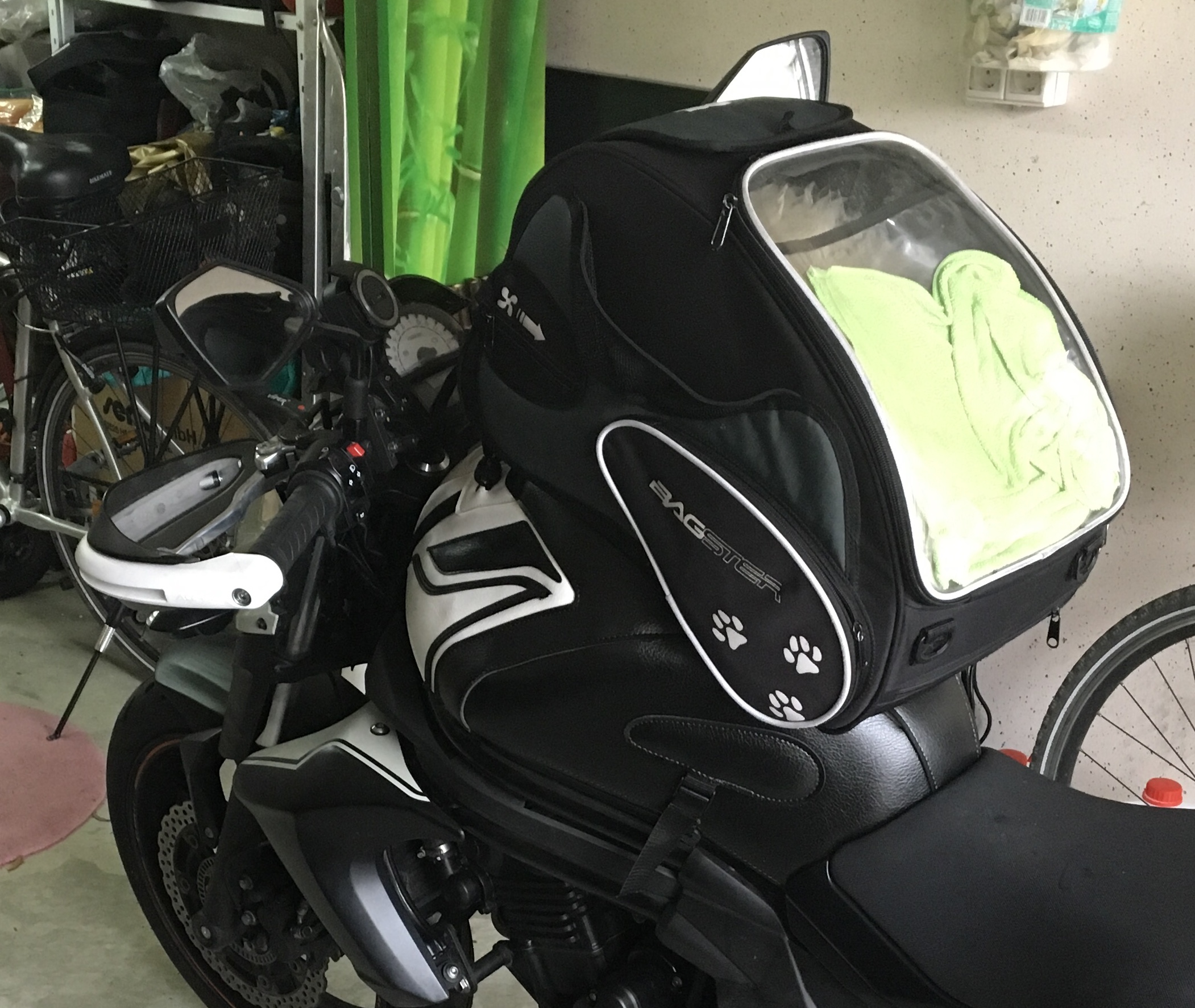 Sie fährt die ER6 n mit der Bagster Hundehütte drauf .