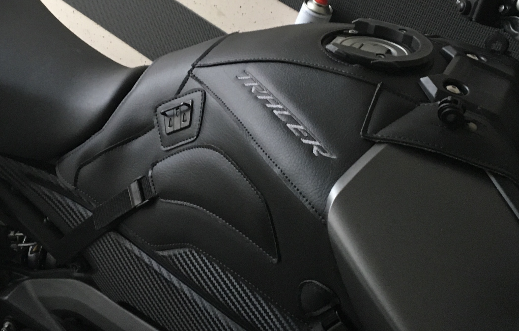 Bilder die ich von der normalen MT 09 gesehen habe , sieht aber noch besser aus da sie den ganzen Tank umschließt . Bei der Tracy ist die Lederkutte eher ne Weste