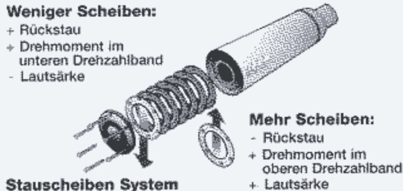 gibt da ja so töpfe von supertrapp (oft in harleys verbaut) die arbeiten mit prallscheiben, zur schalldämpfung und auch der durchlass kann hier verändert werden.