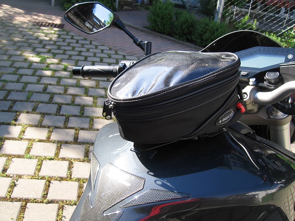 Der Tankrucksack hat 3-6 Liter Inhalt(30€), größere TR sind aber auch kein Problem.