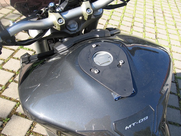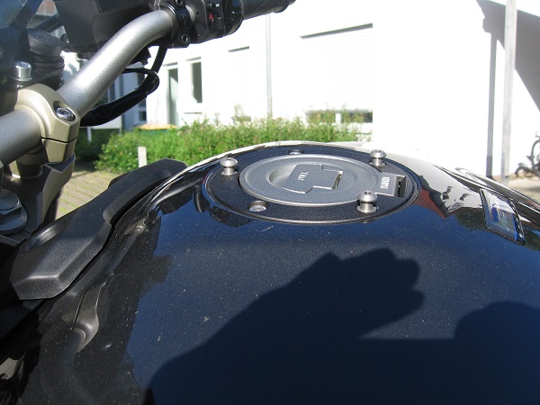 Das ist ein System ähnlich Quick-Lock oder Givi, aber ohne den Tankring.