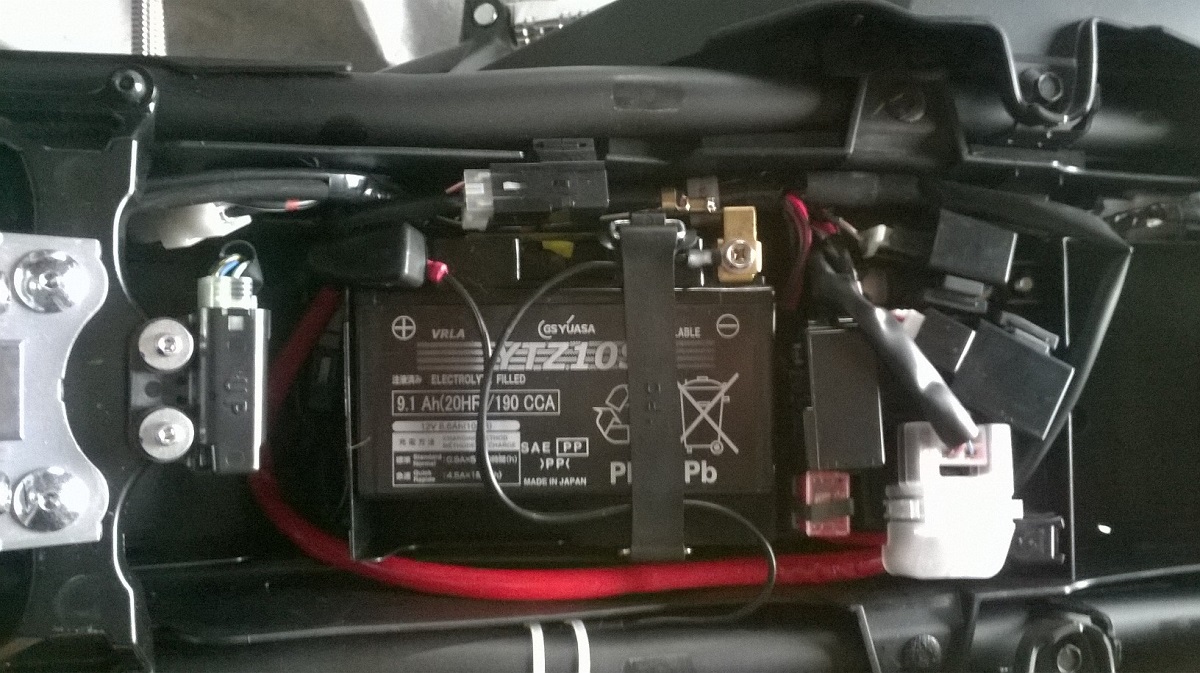 Ansonsten hier auch nochmal ein Bild von Batterie im eingebauten Zustand in der MT09 (nicht Tracer).