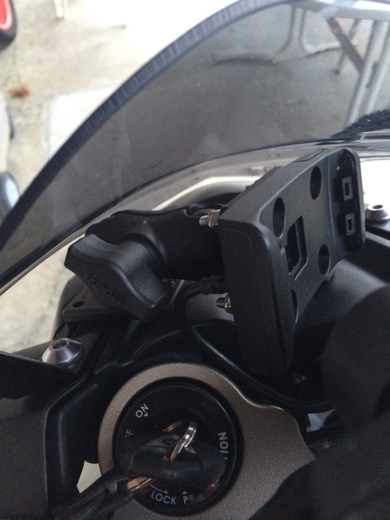 Ein weiterer RAM Mount Halter habe ich unter der Yam. Zubehörscheibe montiert.