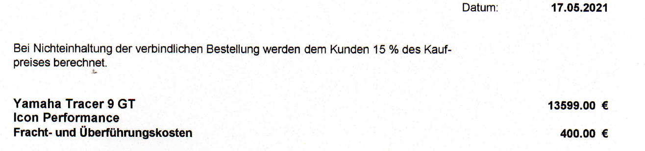 Hallo Herr Frankbe entschuldigen sie die späte Antwort. Ich habe heute erst eine Aussage von Yamaha bekommen. Ihre Tracer 9GT+ kommt leider erst KW 25/26 bei