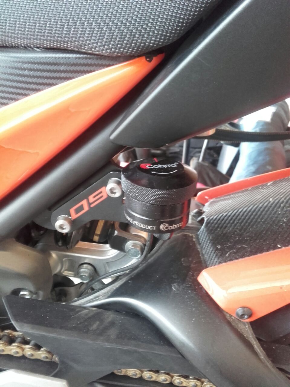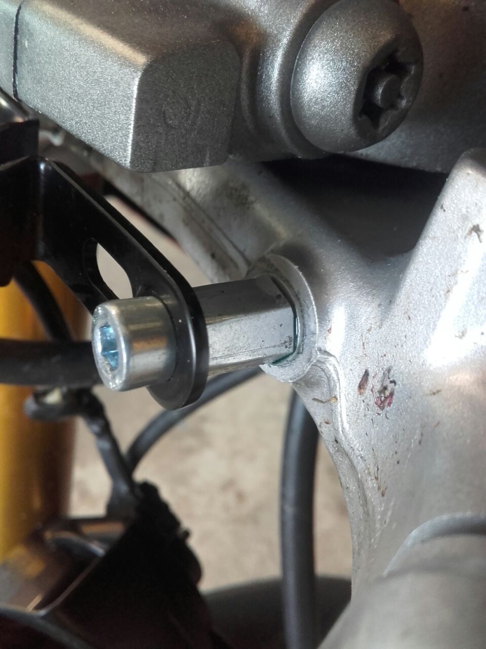 Habe keine Soziusfußrasten und ihn dadurch gegenüber Bremsflüssigkeitsbehälter (hinten) angebracht.