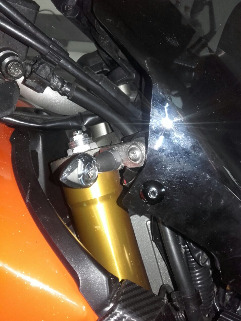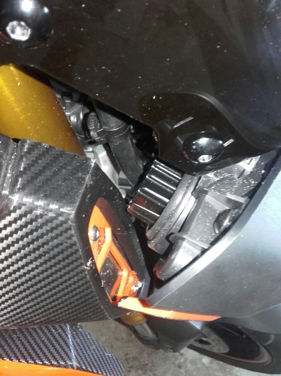 Habe die obere und untere Scheinwerferhaltung um 15 mm nach vorne verlegt . ( ist jetzt genügend Abstand zu den Lufthutzen )