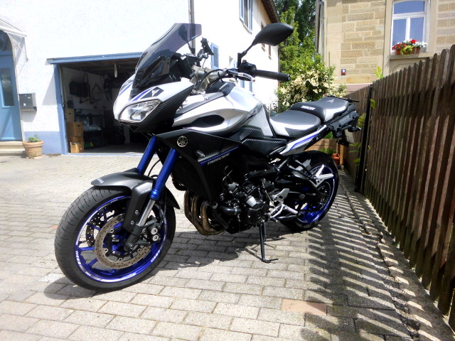 So nun bringe ich mal aktuelle Bilder von meiner Tracer,habe heute meine Felgen Aufkleber bekommen und finde sie machen sich gut.