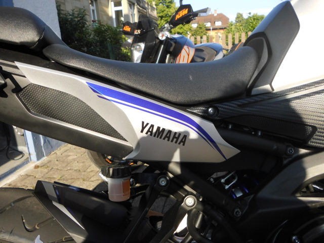 Was ich mir noch irgendwie vorstellen könnte,hätte ich das jetzt nicht dran,ist das 09 von der Blue Race MT 09 von den Lufthutzen auf den Tank machen so ähnlich wie es KKTM bei den großen hat.
