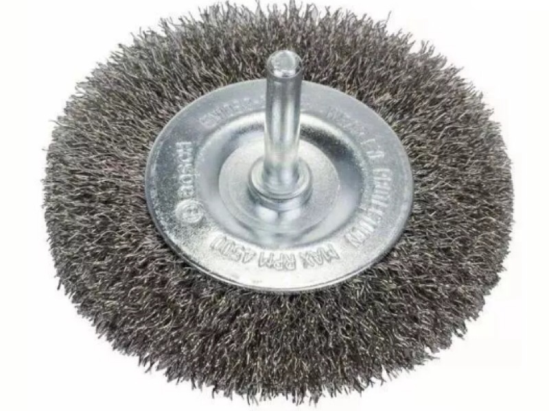 An der Unterseite der Schneide (also die lange Seite) würde ich auch noch etwas Klebeband anbringen um nicht unnötig mehr die Oberfläche des Krümmers zu zerkratzen. Außerdem beim Schaben immer im flachen Winkel arbeiten um nicht einzuhaken. Unten hab ich mal ein Bild von so einem Edelstahl Drahtigel für die Bohrmaschine