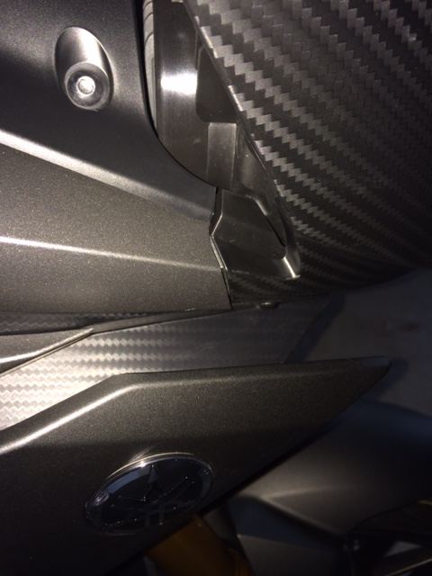 Es ist quasi die Stelle an der die Lampenmaske an der übrigen Verkleidung anschliesst. Ich denke falls das Motorrad umfällt, brechen zuerst weiter aussen liegende Teile. Ist aber wie gesagt keinerlei Kratzer an der Maschine oder irgendetwas was daraus hindeutet. Mir sieht es so nach "schlampig" montiert ab Werk aus. Wollt eben hauptsächlich wissen ob das bei anderen auch so ist. Ob man das korrigieren kann/darf/muss werd ich demnächst beim freundlichen mal nachfragen.