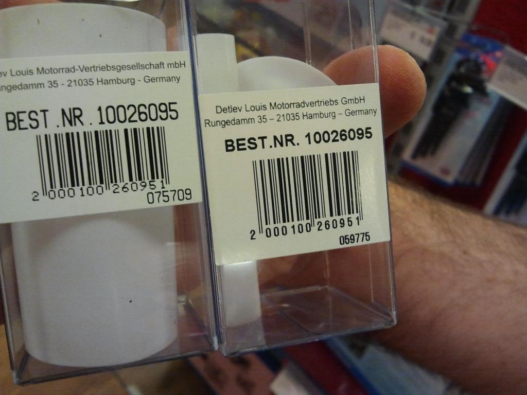 Fazit: Es gibt (mindestens) zwei verschiedene Chargen. Die Ringe waren bei beiden Packungen identisch 0,6mm dick. Aber die Folie für die Gasgriffhülse hat einmal 0,3mm und bei der anderen Variante 0,15mm das lässt sich auch einfach mit dem Auge erkennen. Die dickere Folie ist in einem großen Radius aufgewickelt, die dünne in einem kleinen. Unten ein Bild auf das man das gut sehen kann. Der Unfug ist, dass die Bestellnummer die gleiche geblieben ist (10026095) allerdings gibt es unter dem Barcode rechts noch eine weiter Nummer, die sich unterscheidet (075709 vs. 059775). Auch die Breite der Folie ist unterschiedlich. Die dicke hat 7cm die dünne 6,95cm. Auch das kann erklären warum bei meinem Lenker die Folie überlappt und nicht montiert werden konnte.