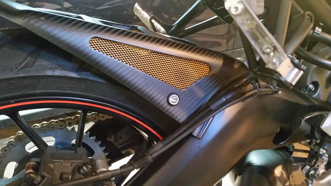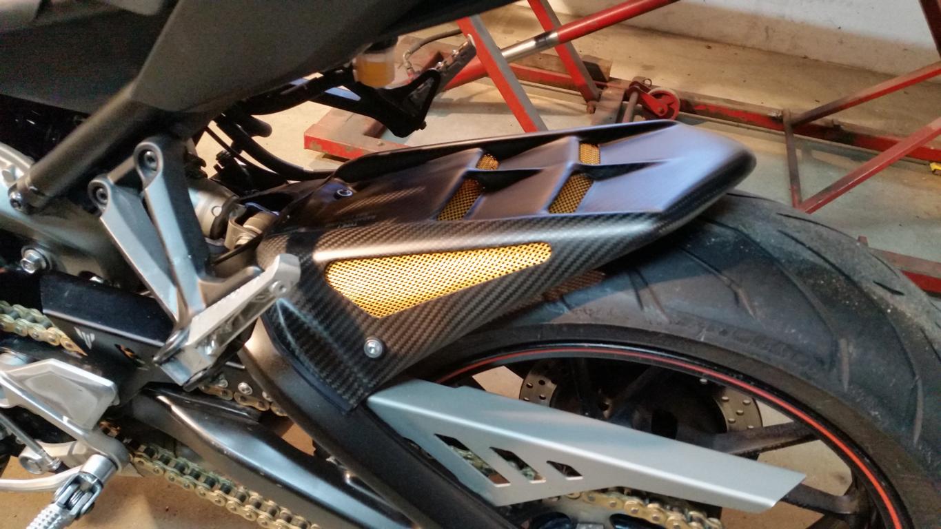 hallo, ich möchte euch meine Erfahrung mit dem etwas größeren hinteren Kotflügel von Powerbronze mitteilen. Ich habe den Carbon Matt mit goldenem Netz montiert. ABE ist dabei. Dadurch dass das Hinterrad seitlich etwas mehr abgedeckt ist spritzt es bei langsamer fahrt (bis max. 80 km/h) nicht mehr so stark auf die Sitzbank. Bringt also ein bisschen was wenn man in der Stadt fährt......
