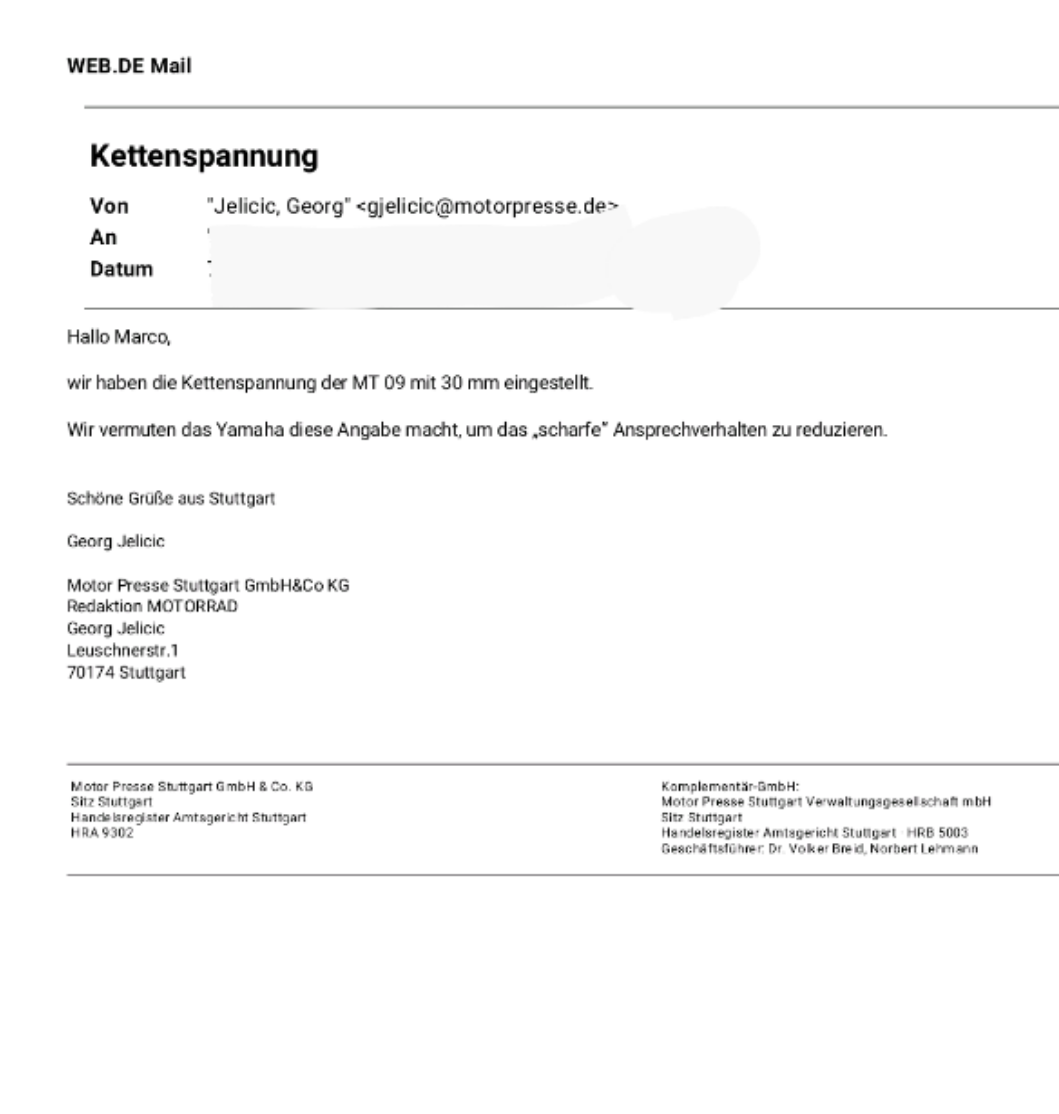 Aber Yamaha kannte den Fall wohl schon da er recht schnell diese Methode als Rückantwort auf seine Anfrage bekam.
