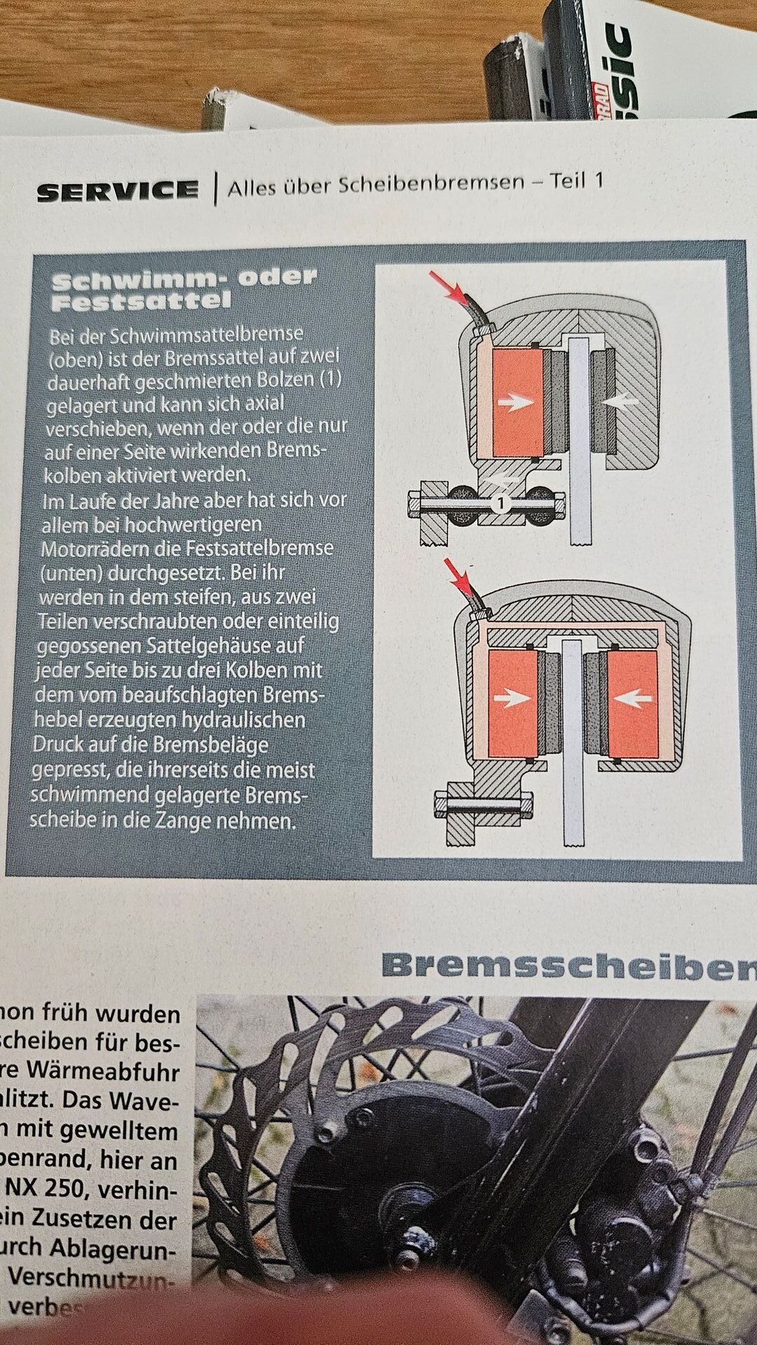 Ist halt nur bei schwimmend gelagerten Bremsscheiben. Mit müssen Spiel haben, weil die Sättel fest sind.