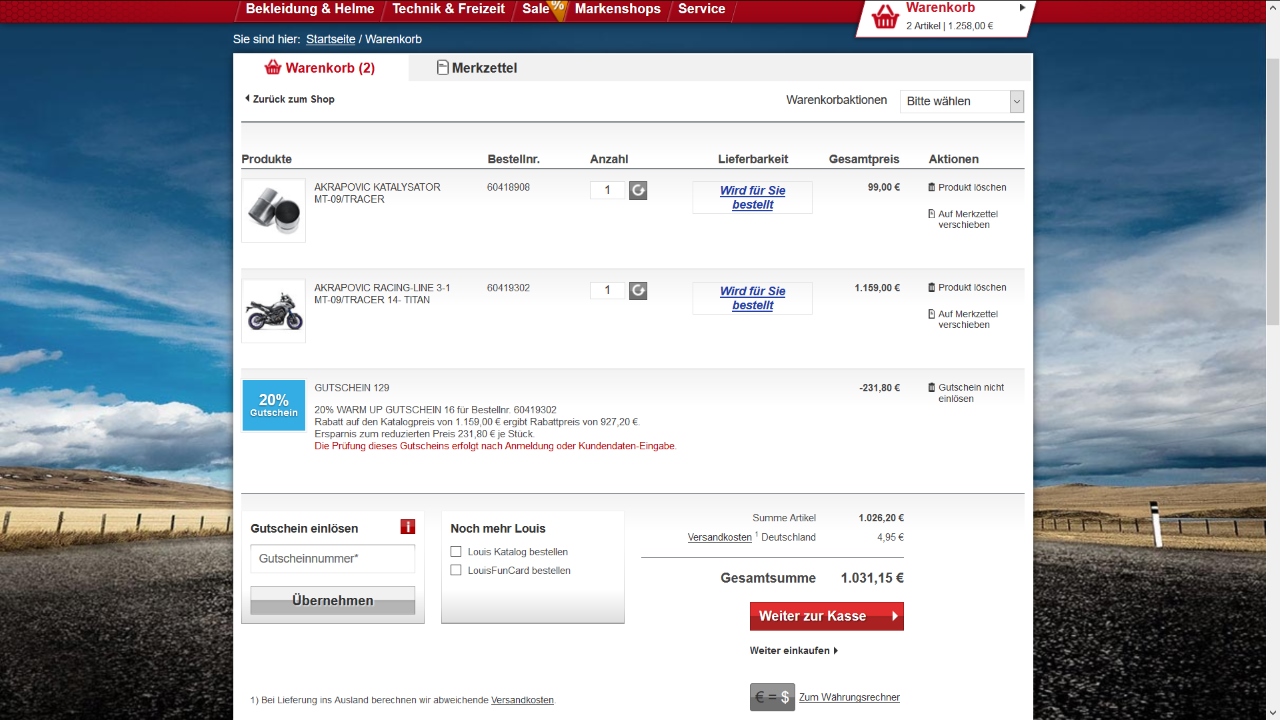 ganz einfach mal in der Warenkorb legen
