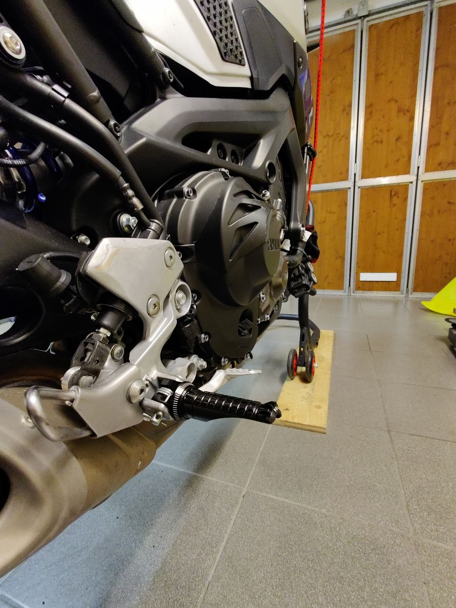 Neue Fußrasten von Puig verbaut die etwas mehr Schräglage vertragen.