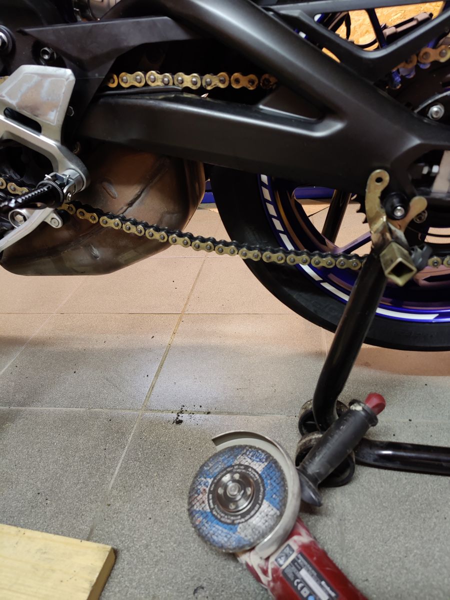 Wilbers-Federbein ausgebaut (nach 50.000km hat sie sich ein Service verdient, Kosten bei Wilbers 129€) und deshalb wieder vorübergehend wieder das alte verbaut. Bremsfüssigkeit gewechselt und ein neuer Gummi für den Schalthebel verbaut.