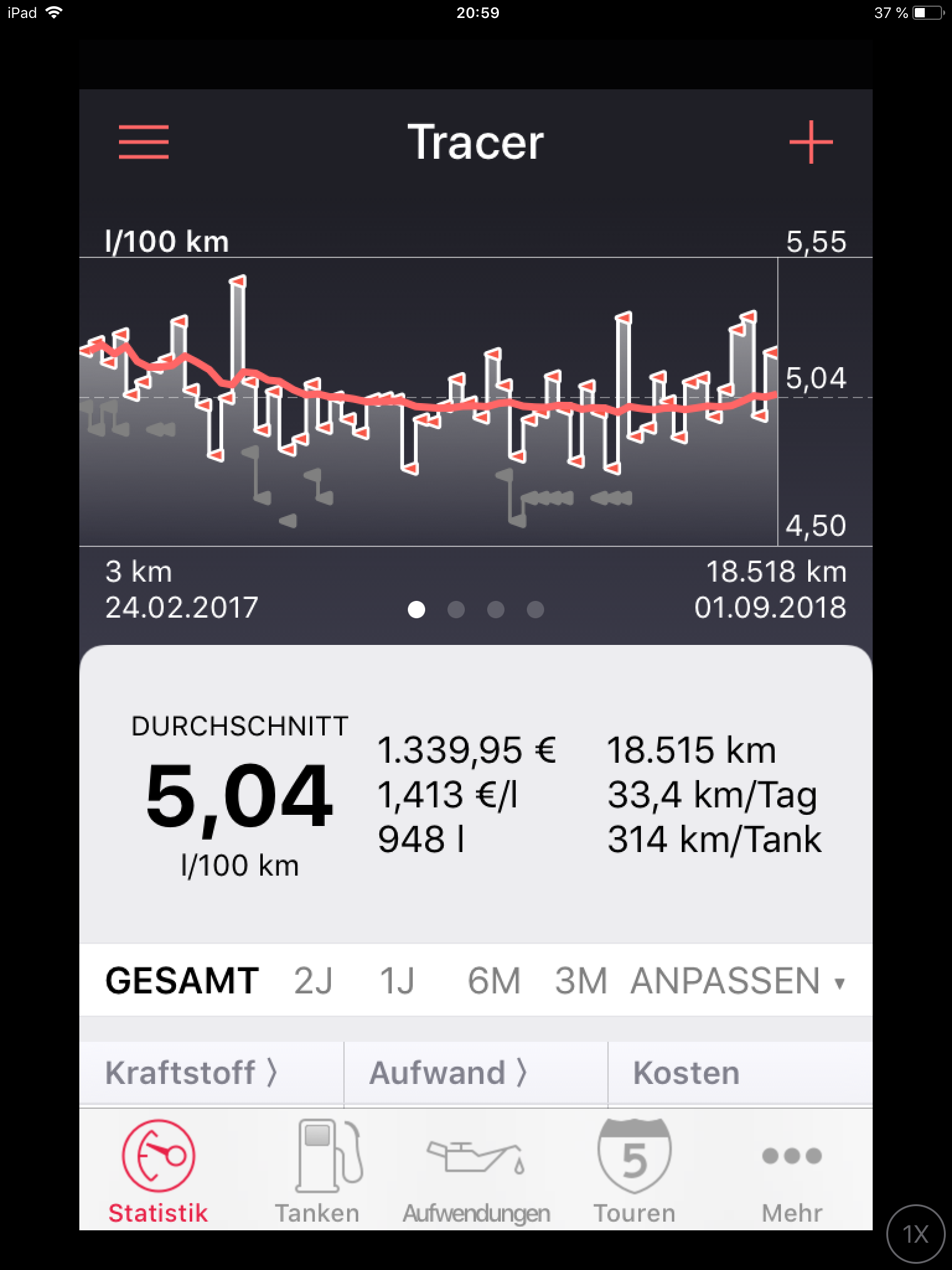 Lückenlose Buchführung, 80% der km im Schwarzwald gefahren bei einer Lebensdauer eines CRA3 von etwa 5k km: