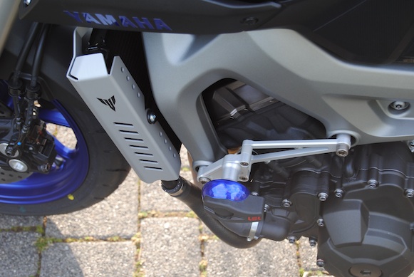 Klar stehen die Sturzpads weit raus, liegt aber in der Natur der Dinge, der Motor baut nun mal an dieser Stelle weit raus