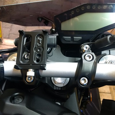 Um das alles so minimal wie möglich zu halten, habe ich mich für den nachfolgenden Halter entschieden und diesen mit einer Ladebuchse versehen.Im Prinzip wie ein kleiner Schraubstock. Der Vorteil ist auch, dass die Handyhülle dran bleiben kann. Und mit einer entsprechenden wasserdichten Hülle wäre der Regen auch kein Thema mehr.