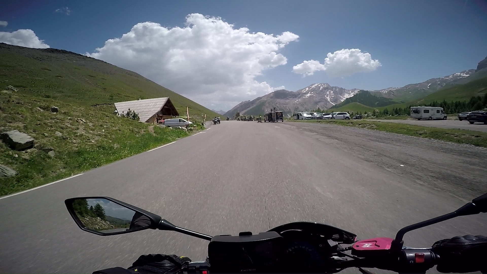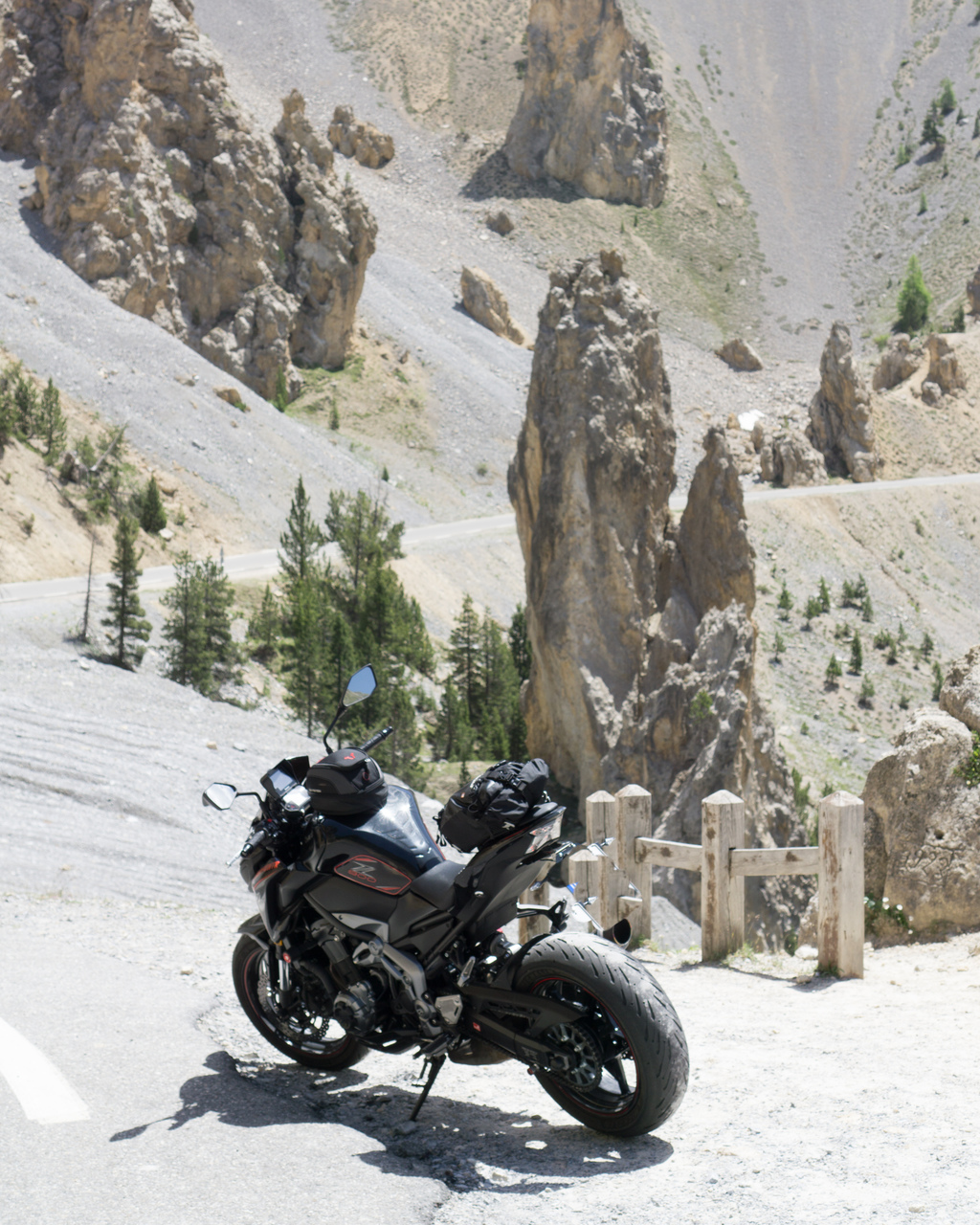 Danach ging es den Pass hoch auf den schon die ganze Zeit gewartet habe, den Izoard. Eine wahre Freude. Nix los, weil unten im Tal die Hauptstraße lang führt. Grip Grip und die Straßenführung, ein Träumchen. Die Kawa ist schon zu übermotorisiert, da reicht fast der erste Gang von Kehre zu Kehre. Es macht halt schon Spaß den R4 mal bisschen schreien zu lassen. Scream for me Baby.
