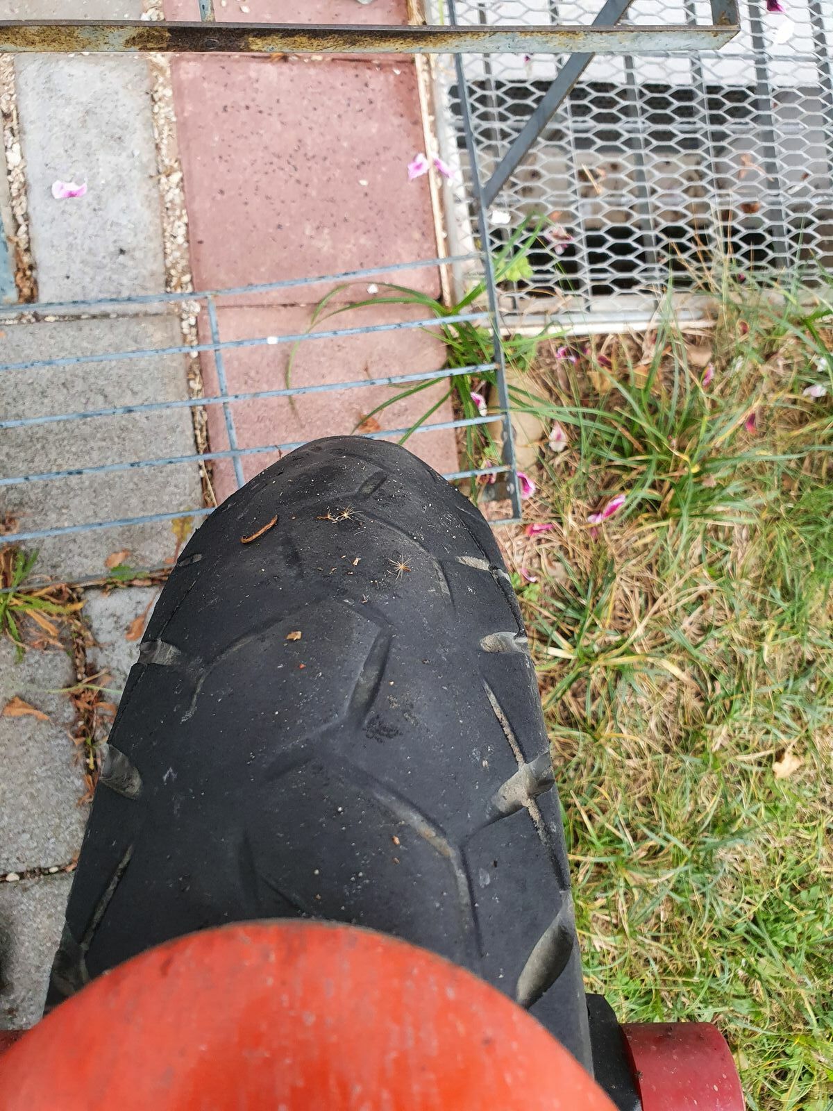 Entweder Qualitätsproblem am Reifen, oder irgendwas ist locker. Schwingenlager, Radachse, Fußraste, Rastenträger. Oder einfach die Sitzbank.