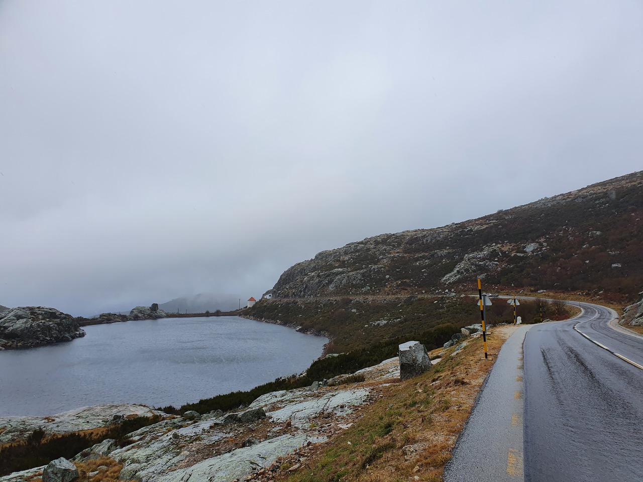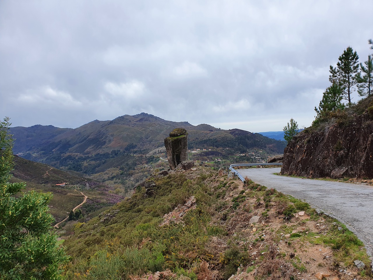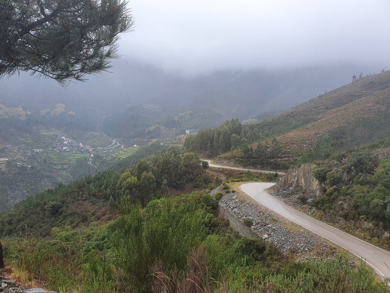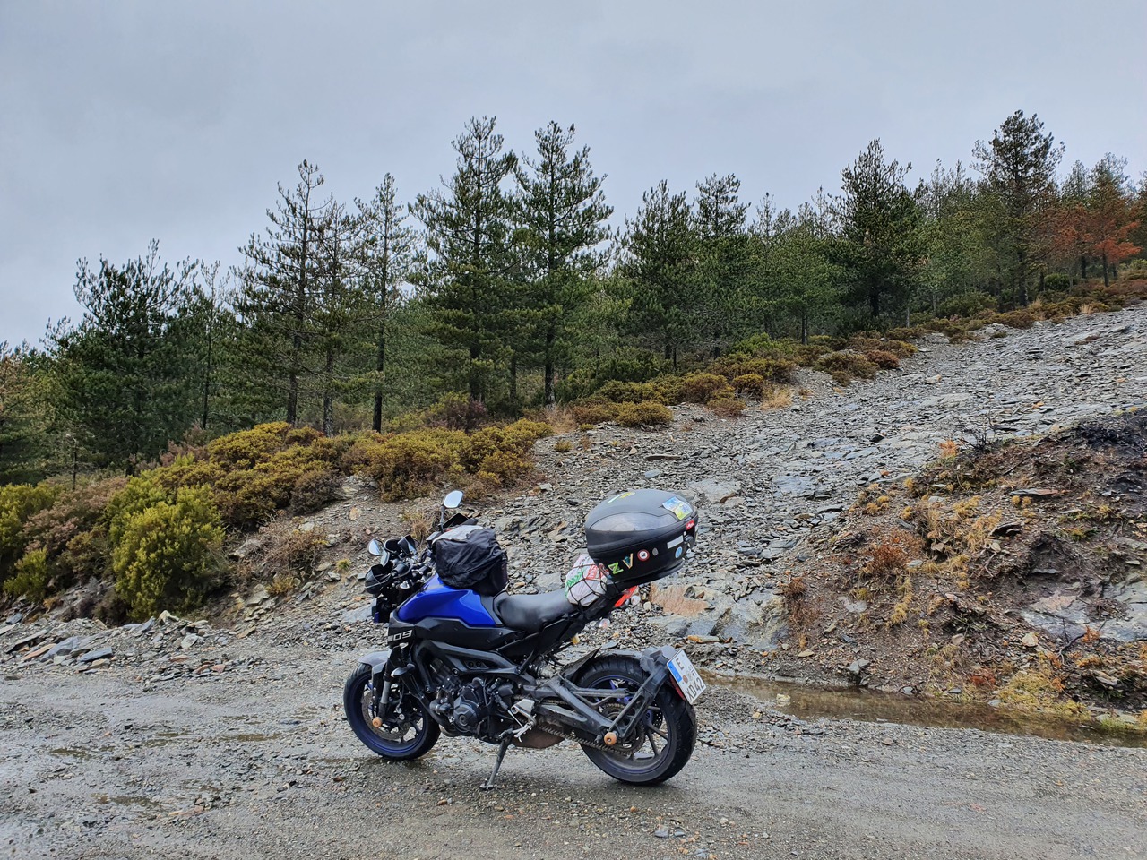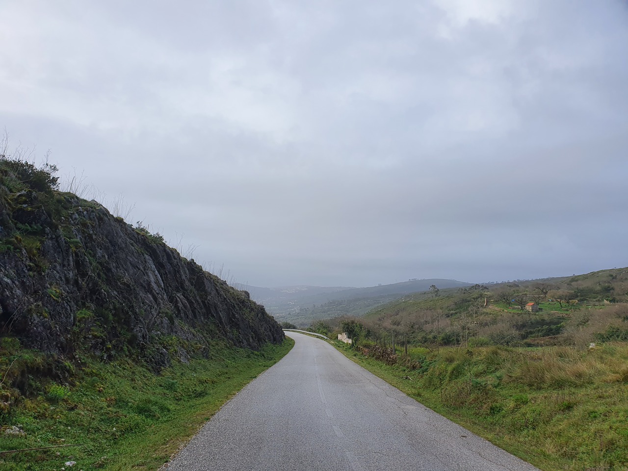 Auf dem Weg zu den letzten beiden Punkten werden die Straßen schlechter. Sie bleiben angenehm breit und die Radien eigenen sich auch für hohes Landstraßentempo, aber die Oberflächenbeschaffenheit lässt es wie eine schlechte Idee erscheinen, hier zu viel zu versuchen. Also gehe ich es gemütlich an. Auf dem Weg zum letzten Punkt kommt mir heute das erste Motorrad entgegen: Ein im Stehen fahrender Endurist. Der Punkt selbst ist eine Sackgasse, und warum, erfahre ich auch gleich: