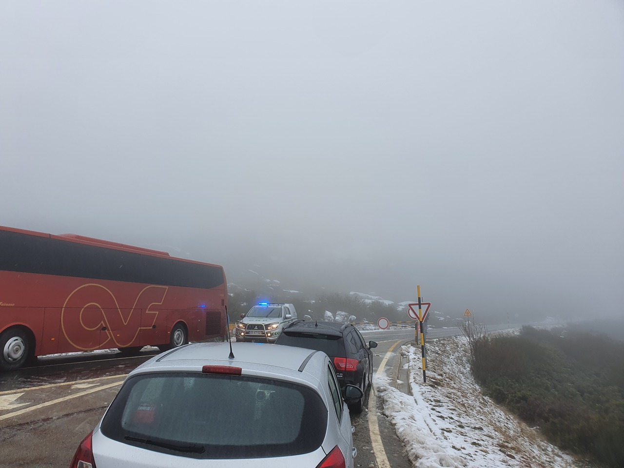 Tja, leider ist heute nix los mit Fernsicht. Ich kann nicht mal bis ins Tal gucken. Aber Pause mache ich hier trotzdem. Eine lange Pause mittags, und eine etwas kürzere nachmittags. Es gibt Kekse und Iso-Wasser aus dem Tankrucksack. Ich komme gut voran und habe keine Schwierigkeiten, mit nichts.