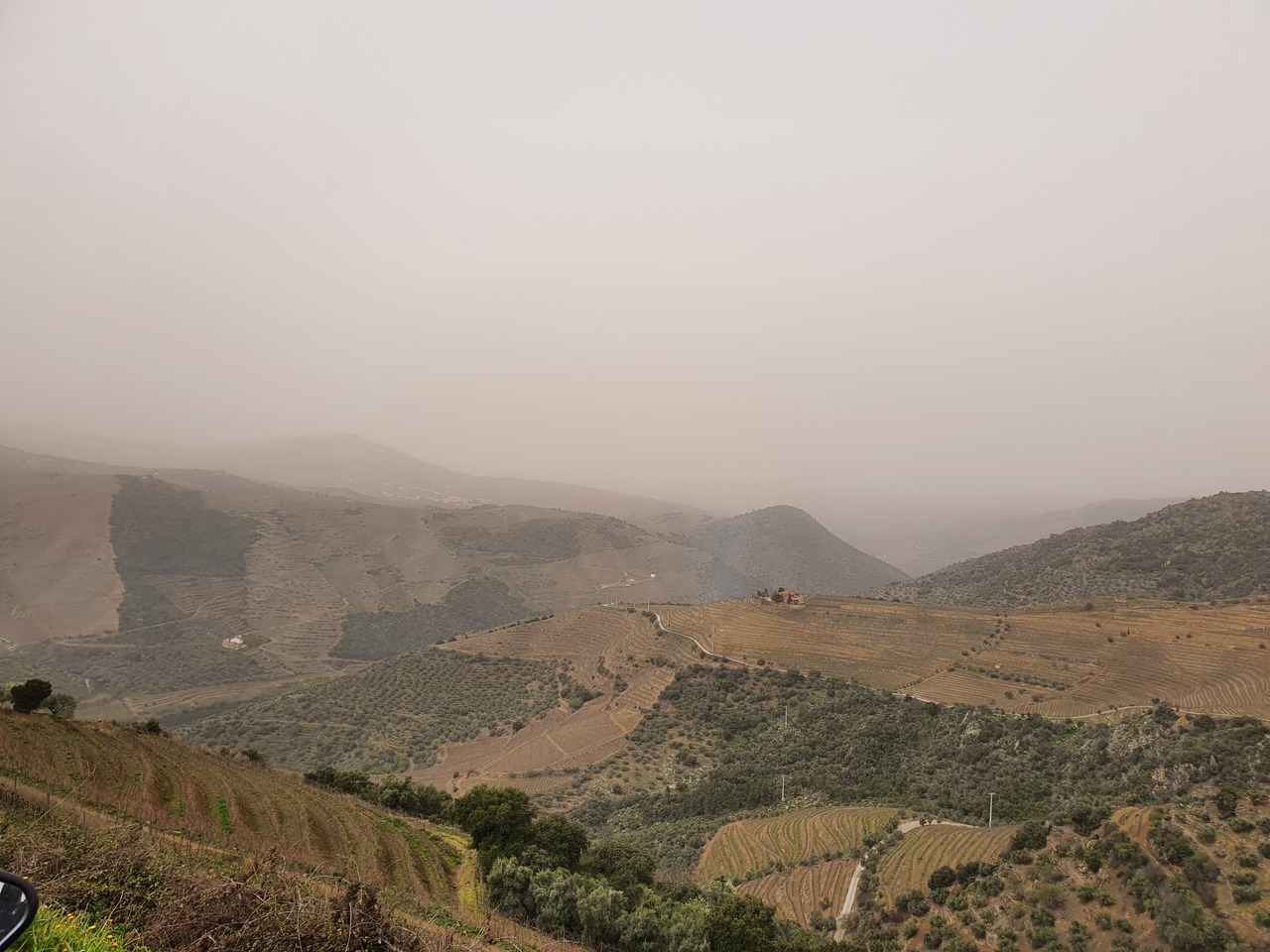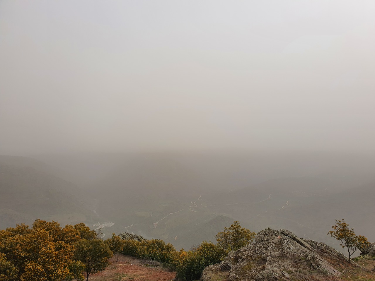 Heute war gutes, trockenes, warmes Wetter angesagt, aber trotzdem habe ich keine Fernsicht: Saharastaub!