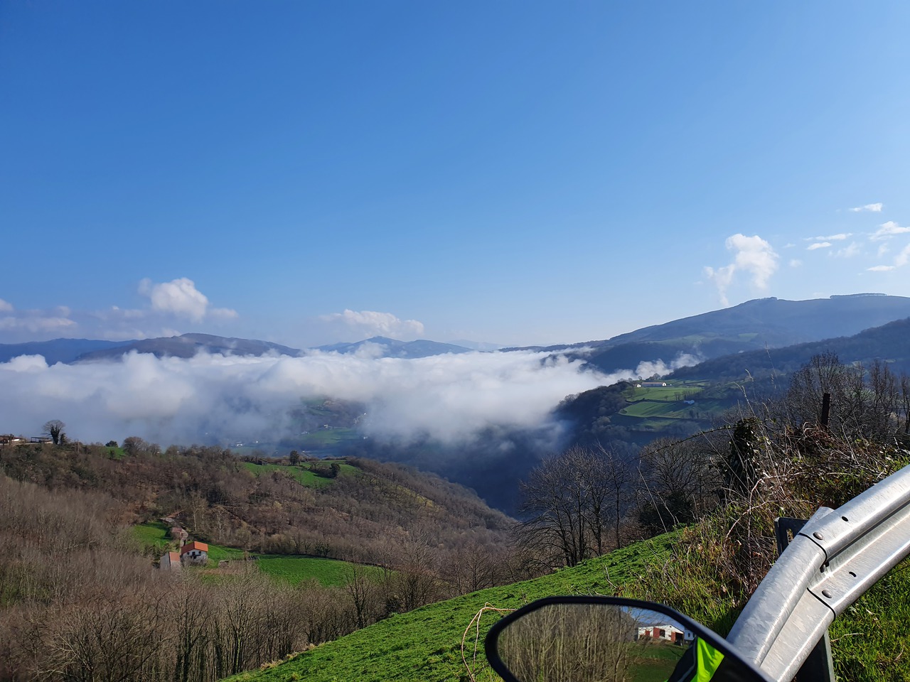 Aber der Motor läuft - das reicht mir. Los geht's, insgesamt doch fast eine Stunde später als die Tage zuvor, jetzt bloß nicht abwürgen und bei Pausen lieber laufen lassen. Heute früh steht der Passknackerpunkt "Gorostieta, Alto" auf meinem Plan, der 2022 neu dazu kam. Da ich 2021 alle Punkte in Spanien gemacht habe, muss ich da natürlich hin. Wie sieht das denn sonst aus auf der "Lebenswerk"-Karte! Der Punkt ist auch der Grund für die Anreiseroute. Auf der Abreise wäre der Umweg hierher nämlich größer, und irgendwo muss ich ja entlang fahren. Weil ich eh schon hier bin und quasi auf der Zufahrt davon übernachtet habe, nehme ich auch noch den benachbarten Punkt mit dem kompakten Namen "Leurtzako urtegiak / Leurza, Embalses de" mit. Das ist ein kleiner Stausee im Wald, und zwar Sackgasse, aber man kann zwei verschiedene Wege hoch fahren, so dass ich nicht alles doppelt fahre. Die Route ist so 20 Minuten länger als ohne, aber ein bisschen Spaß muss sein.