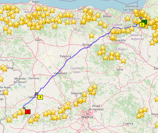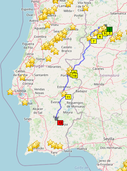 Frisch gespannt geht's auf die letzte Etappe, von Salamanca nach Südwesten in die Sierra de Francia. Francia heißt Frankreich, und die Sierre de Francia liegt an der Grenze zu Portugal - logisch, oder so. Hier haben tüchtige Menschen über den Winter 6 neue Passknackerpunkte auf der spanischen Seite eingetragen, wo ich also noch nie war, usw siehe oben