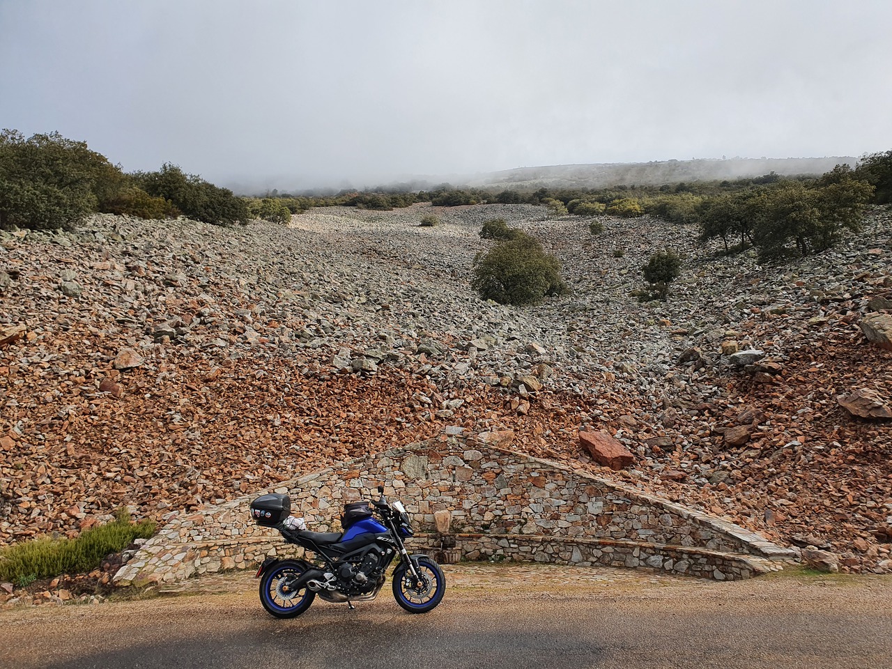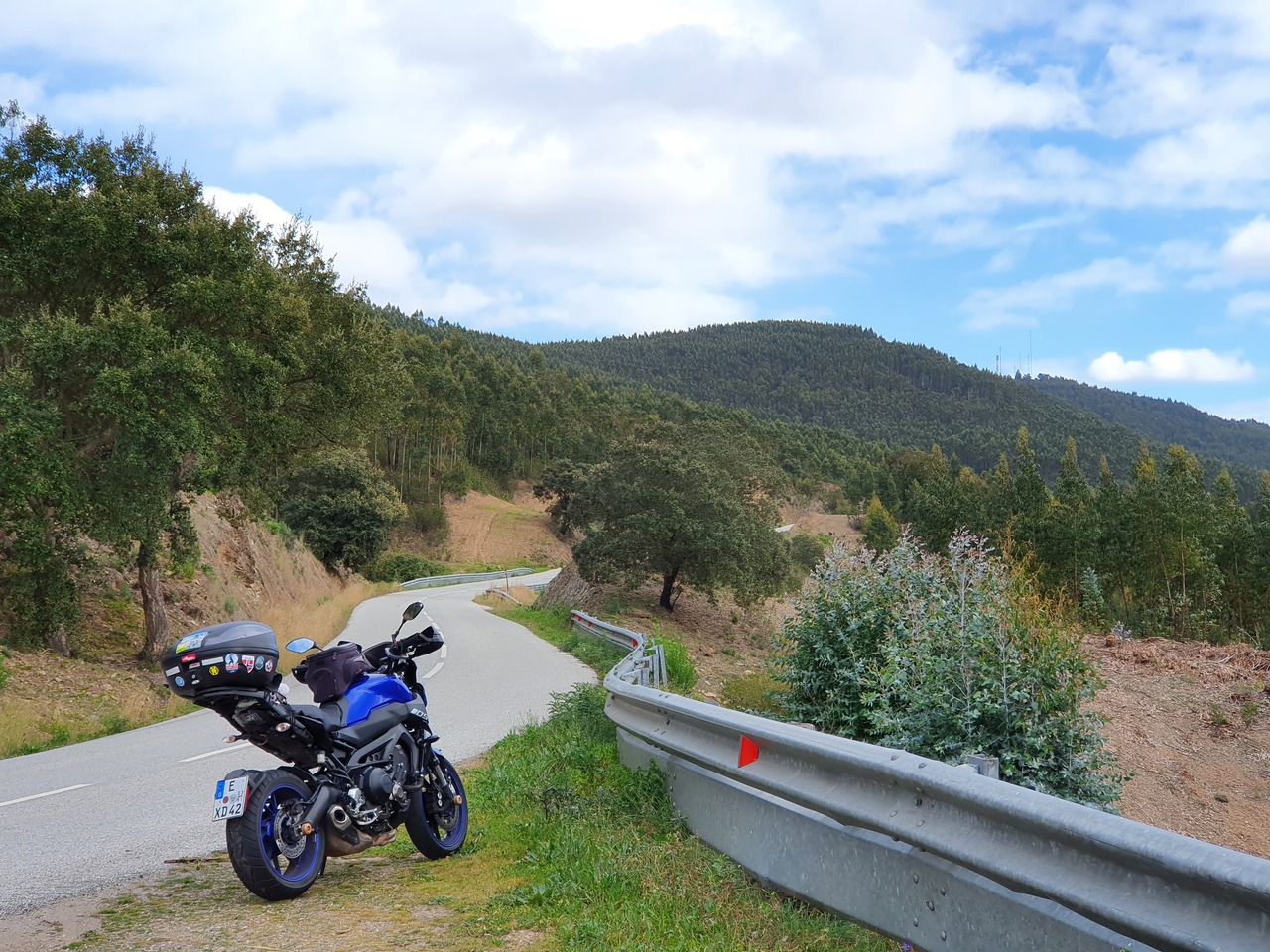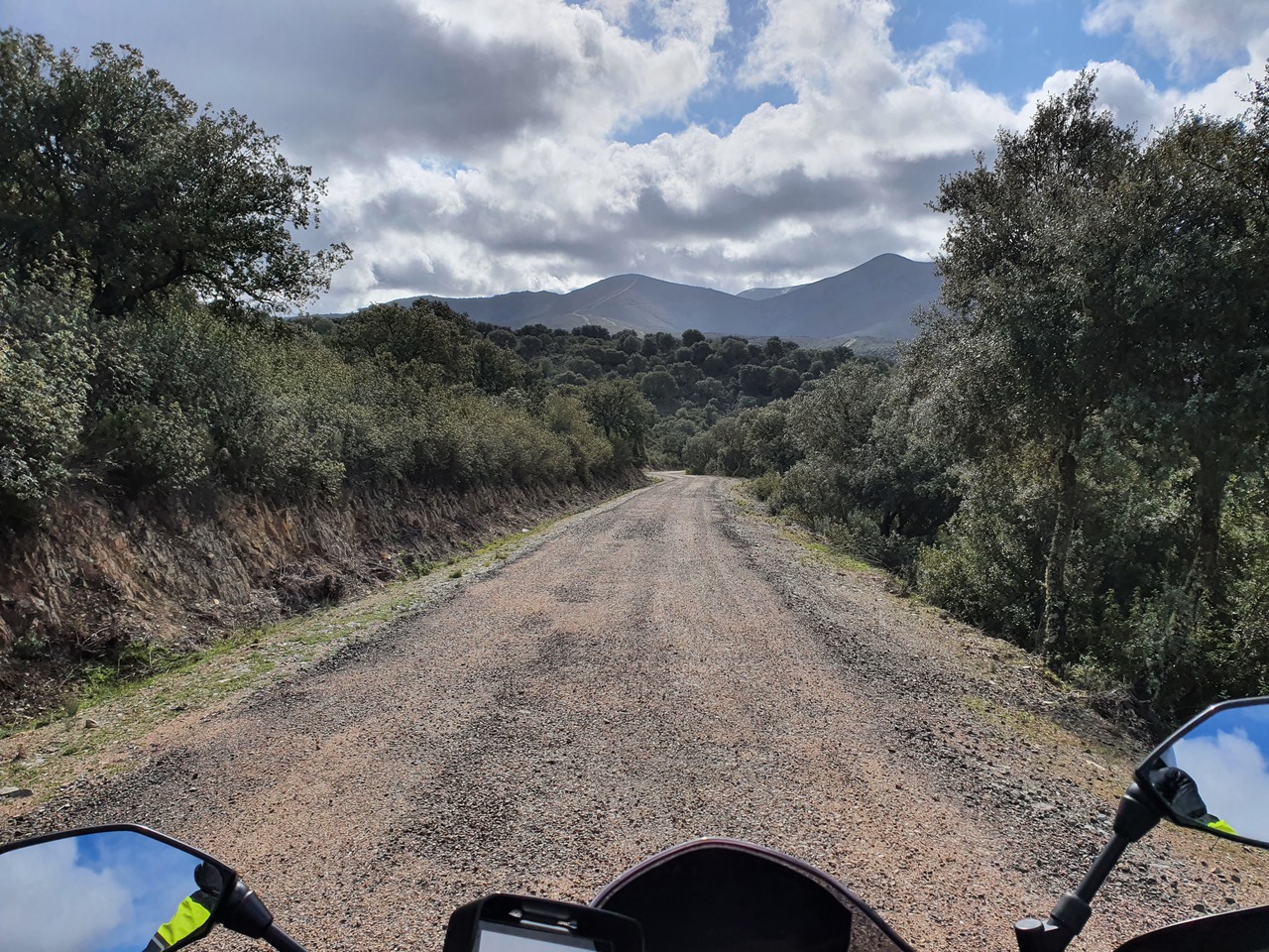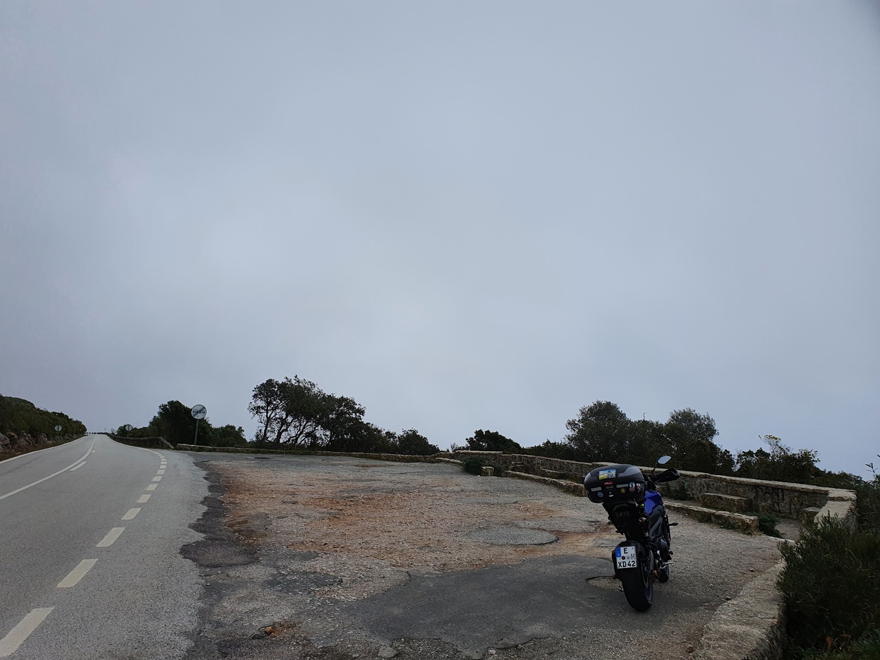 So fahre ich die ersten zwei Punkte ohne Heizweste. Das klappt gut. Ich achte darauf, dass ich keine TCS habe, nachdem ich mich deshalb letztes Jahr auf die Nase gelegt habe. Der Weg zum zweiten Punkt hoch ist neu. Der ist durchaus schön, und vielleicht nichts besonders in Spanien, aber ich habe Spaß. Es erinnert mich daran, was da noch alles leckeres auf mich zukommt. Der Quickshifter verweigert übrigens auch den Dienst - die zugehörige Kontrollleuchte habe ich abgeklebt, denn die leuchtet normalerweise permanent grün, was mich irritiert.