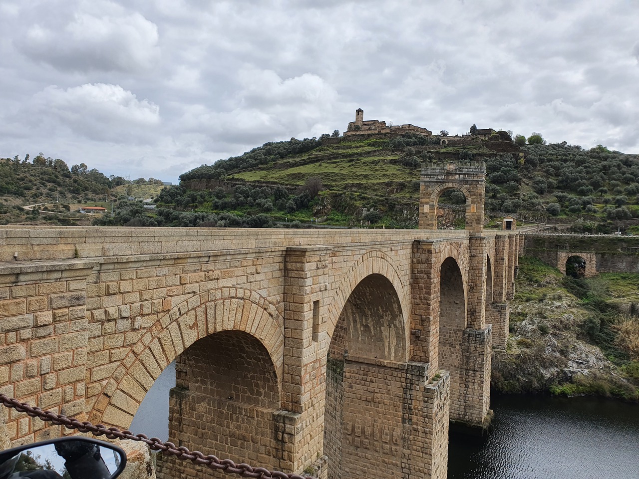 Meine Kettenspannung macht mir etwas Sorgen. Das merke ich am Lastwechselverhalten. Wenn der Schub verzögert und mit einem Ruck kommt, möchte die Kette gespannt werden. Leider kann man mit dem Bordwerkzeug der Yamaha nicht die Achse lösen. Interessanterweise ginge es mit dem Bordwerkzeug meiner Kawa, aber das habe ich nicht eingepackt. Die Kette zu spannen, ohne die Achse zu lösen ist zwar prinzipiell möglich, aber nur 1x - die Gewinde der Kettenspanner in der Schwinge sind dem nicht gewachsen. Also suche ich mir in der Nähe der Autobahn und der nächsten Großstadt, Salamanca, zwei Motorradwerkstätten in einem Gewerbegebiet raus und fahre da einfach mal vor. Das Gewerbegebiet ist nach deutschen Maßstäben ziemlich chaotisch. Es sind richtig viele eher kleine Unternehmen, Tür an Tür, die auch die Straße als Gewerbefläche nutzen. Ständig muss man Gabelstaplern und Arbeitern ausweichen. Werkstatt Nr. 1 hat geschlossen. Bei Werkstatt Nr. 2 stehen diverse Enduros und Quads und jemand räumt gerade dicht gedrängte 50er Roller aus einem Transporter. Da fühle ich mich richtig. Ich halte, stelle den Motor ab, gucke unschuldig und wackle an der Kette. Man steht meinem Problem mitfühlend gegenüber und 15 Minuten sowie 10 Euro später bin ich wieder unterwegs, und das auch noch mit frischem Kettenspray - von dem die Hälfte vermutlich nicht lange haften wird, zumindest nicht auf der Kette, aber was soll's.