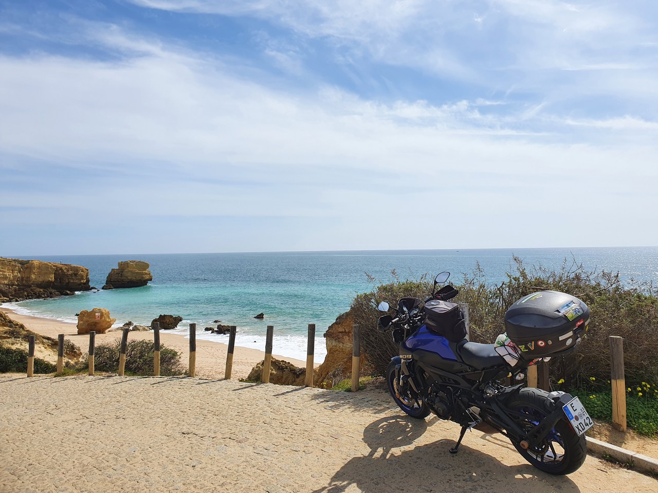 Nach den 6 spanischen Punkten morgen früh geht's nahtlos nach Portugal rein, und damit dann richtig los. Sozusagen Zeit für ein Zwischenfazit Anreise: Ja, es ist weit. Nein, das macht keinen Spaß, aber man kann es ertragen. Die ersten Schwierigkeiten hatte ich heute und konnte sie meistern. Es ist in Summe echt unangenehm kalt auf der Naked, das Windschild reicht mir ungefähr bis zum Bauchnabel, und ohne das ganze Heizgeraffel weiß ich nicht, ob ich das geschafft hätte. Vielleicht muss ich doch mal einen Transporter anschaffen. Na, mal sehen was nach der Heimreise dazu denke - dafür habe ich doppelt soviel Zeit eingeplant wie für die Anreise
