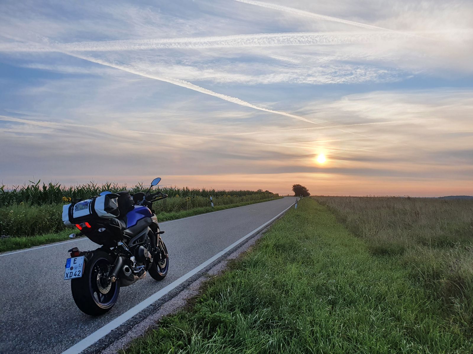 ... auch wenn das Motorrad hinterher reichlich dreckig ist. Die Autobahn nach Hause ist dann schließlich endlich mal weitgehend frei von Stau und besonders untalentierten Verkehrsteilnehmern. So komme ich 18:30 gut zuhause an. Das reicht ja noch für eine Dusche vor dem Abendessen, was für ein Komfort. Nur die MT-09 darf draußen schmollen, die wird erst morgen geputzt.