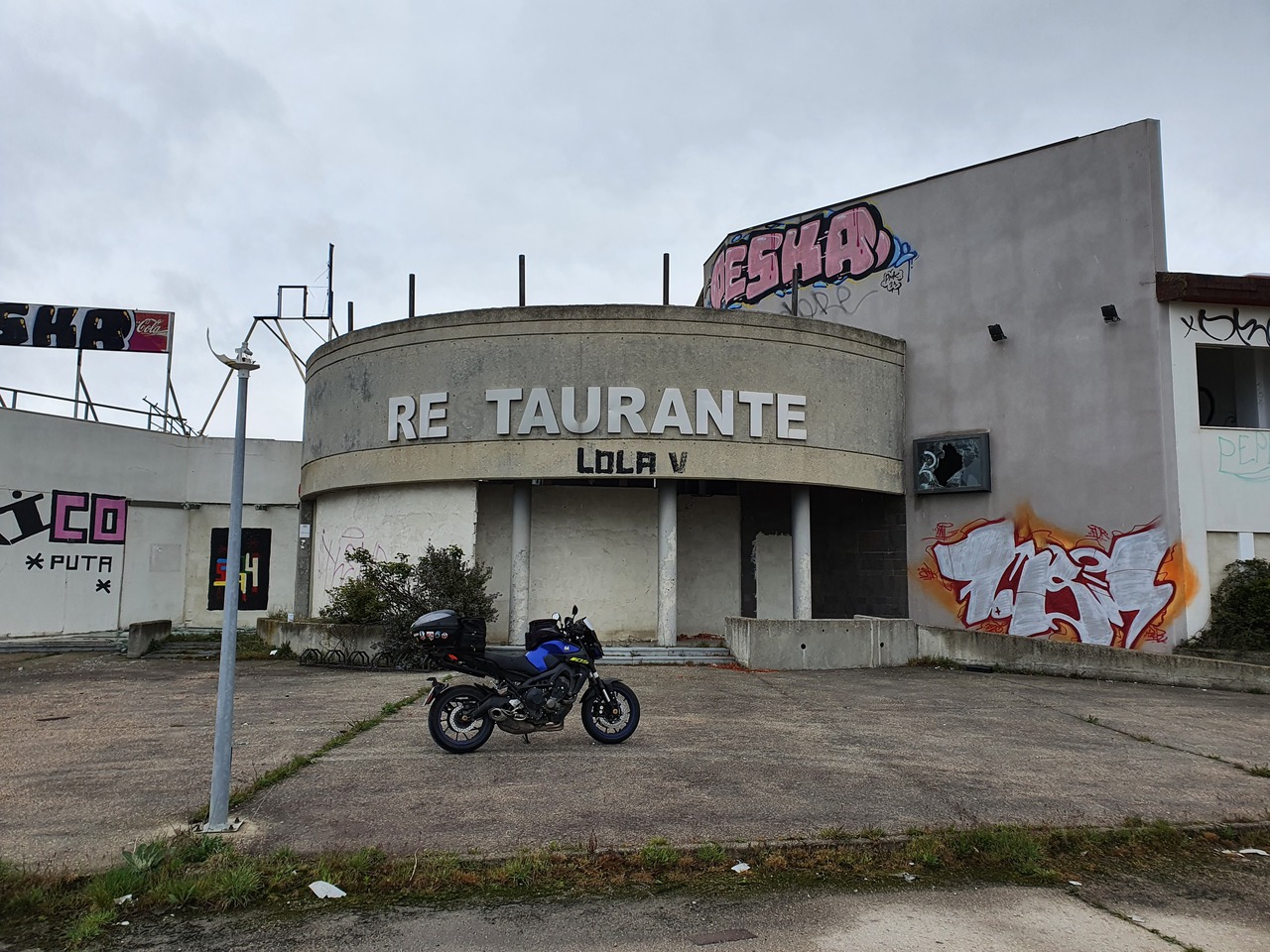 Weiter geht's zur nächsten Pässegruppe, östlich von Burgo. Alto de Pradilla steht auf dem Plan. Es ist wieder mal sehr kalt und auch nass. Bei einer kurzen Regenpause raste ich an einem verlassenen Hotel. Twix muss rein.