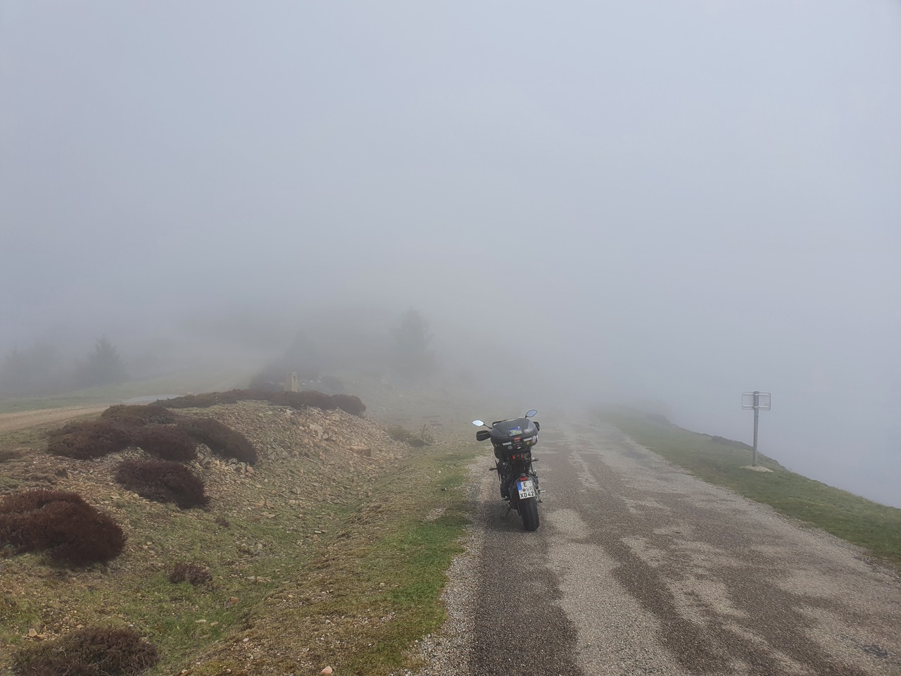 1840 Höhenmeter, 4 Grad, Nebel, sehr tiefe Sackgasse - könnte einer der abgelegensten Orte auf dem Straßennetz in Westeuropa sein.