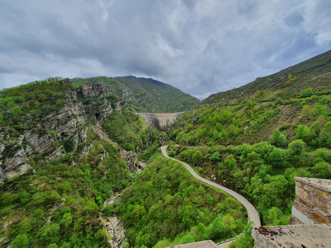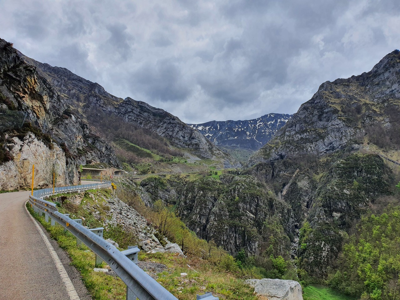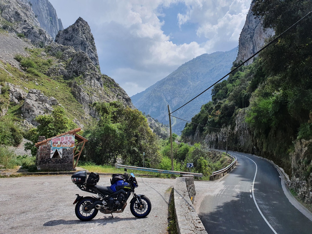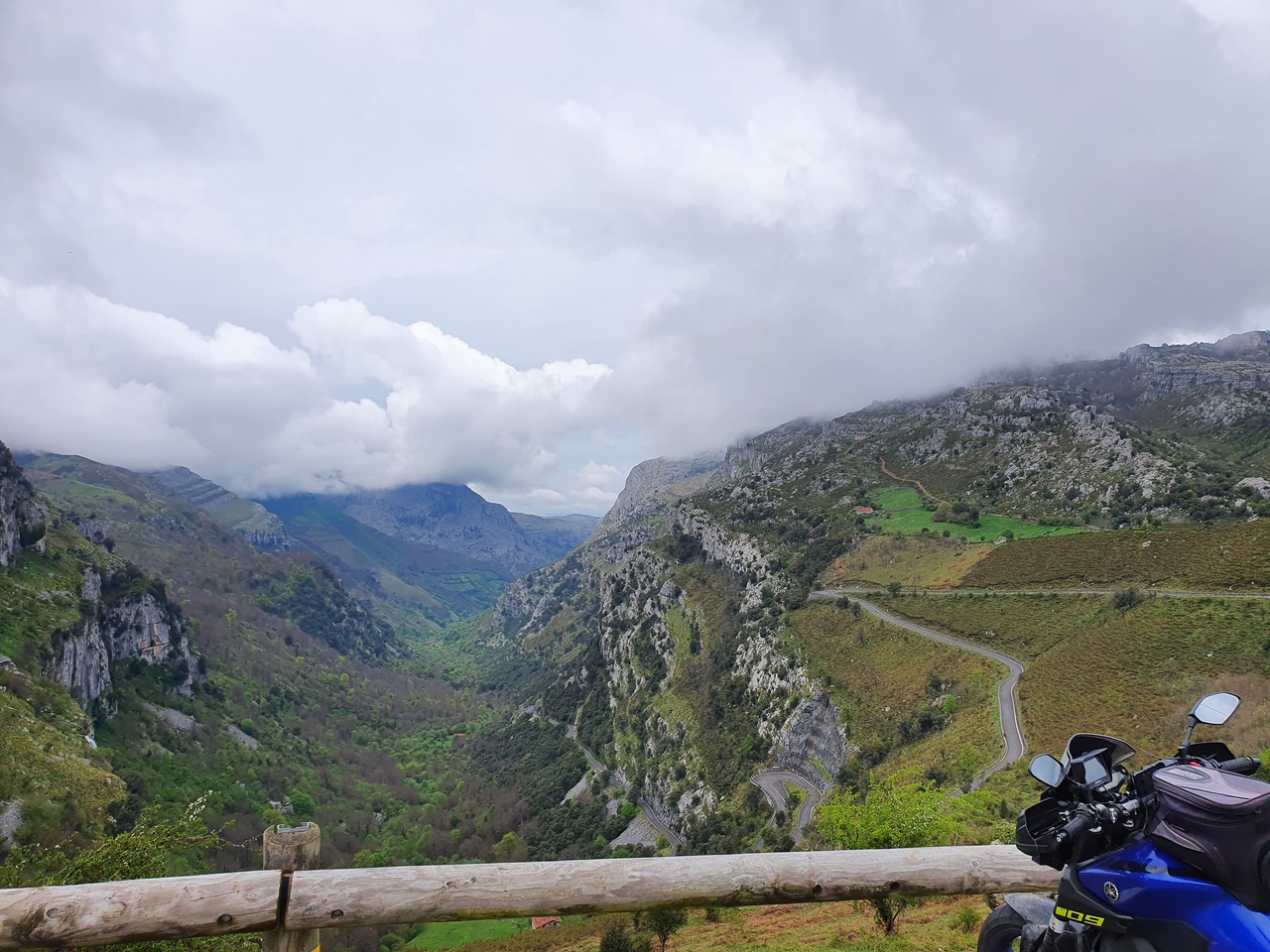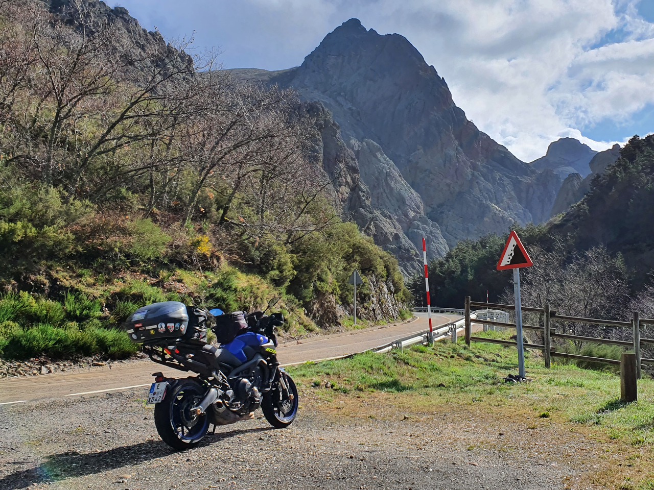 Die letzten Kilometer ziehen sich wirklich. Dass es durch eine schöne Schlucht geht tröstet mich nicht, ich gucke fast schon mehr auf die restlichen Kilometer als auf die Straße. Völlig nass und durchgefroren komme ich am Hotel an, aber die Tür ist vergittert und drinnen ist es dunkel. Nein, bitte nicht auch noch das. Ich wende, parke davor, da hält ein Passant. Den quatsche ich an: Hotel apierto? Si! Das Hotel ist offen! Klar, es hat mehrere Türen. Ich fummle mein Gepäck runter, was ewig dauert, und werde nach der Garage gefragt. Der Passant ist wohl der Wirt. Klar will ich in die Garage! Er geht zu Fuß 100 Meter weiter, und öffnet er Tor zu ca. 60 qm mit Sandboden, Enduro, Traktor und 3 Autos. Das passt für mich.