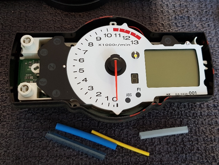 Ich habe mir in das Kombiinstrument von meinem Versys Tacho eine Ganganzeige einbauen lassen. Wurde CNC-gefräßt. Die Elektronik sitzt auch im Gehäuse, und als Taster zum Einstellen ist nimmt man den zum Umschalten der Original-Anzeige. Sieht total original aus und funktioniert klasse. Nach 130000 km habe ich die Versys gegen ein jüngeres Modell getauscht und stand dann auch vor der Herausforderung, diese Ganganzeige in dien nächste Versys umzubauen, oder den Kilometerstand der beiden Tachos zu tauschen. Leider haben die auch noch die Platine verändert in der Serie. Zum Glück hatte ich einen Feinelektriker an der Hand, der unterm Mikroskop löten kann. Mit dem Lötkolben kann ich nur schmelzen ![]()