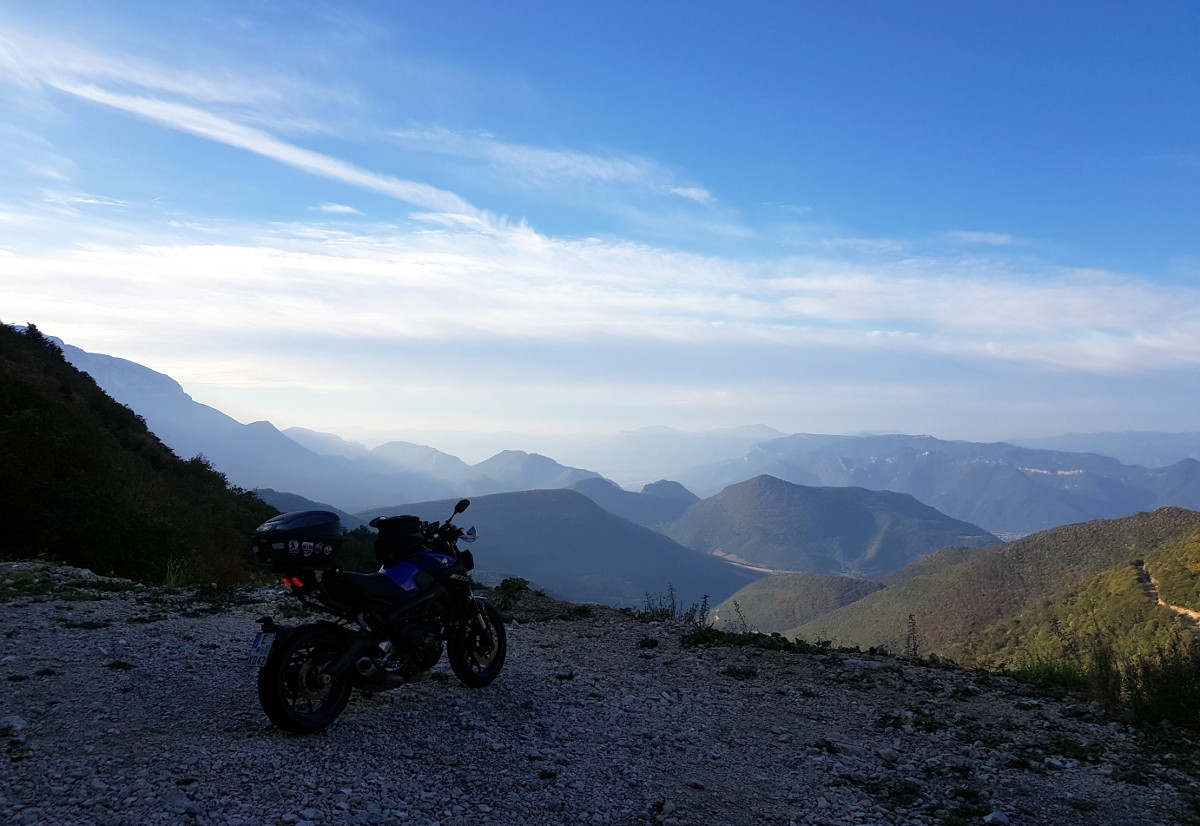 Danach folgen viele verschiedene kurvige Ministraßen bei eitel Sonnenschein, leider teilweise mit Gravillons. Tolle Aussichten. Es ist eher kalt. Interessant ist noch, dass es immer wieder Hammer Aussichten gibt.