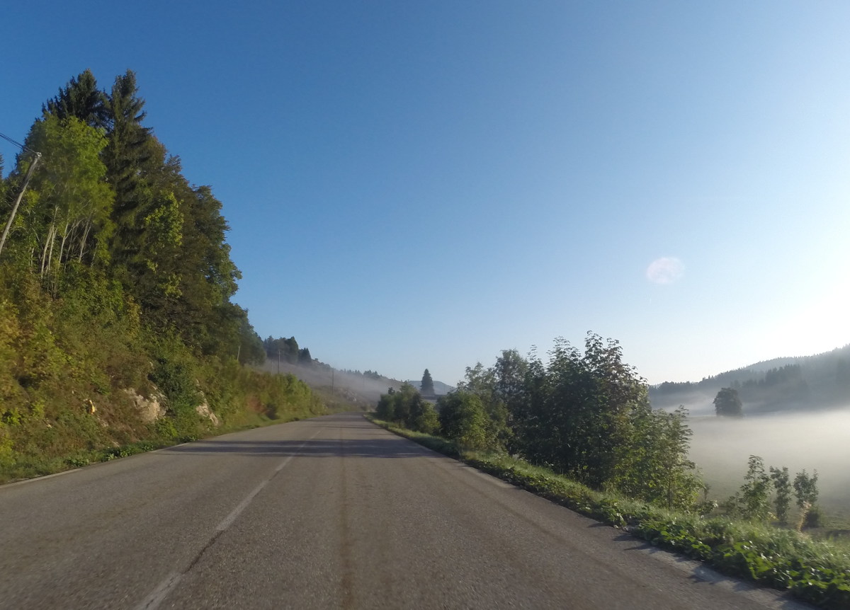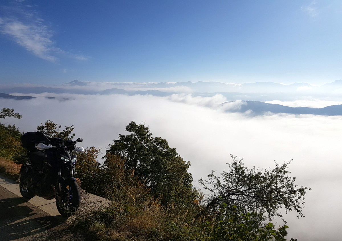 So kann der Tag beginnen. Weiter im Vercours geraten wir in Nebel - oder in eine Wolke? Zwei mal Links abbiegen, und die Sonne ist wieder da. Aber seht selbst...