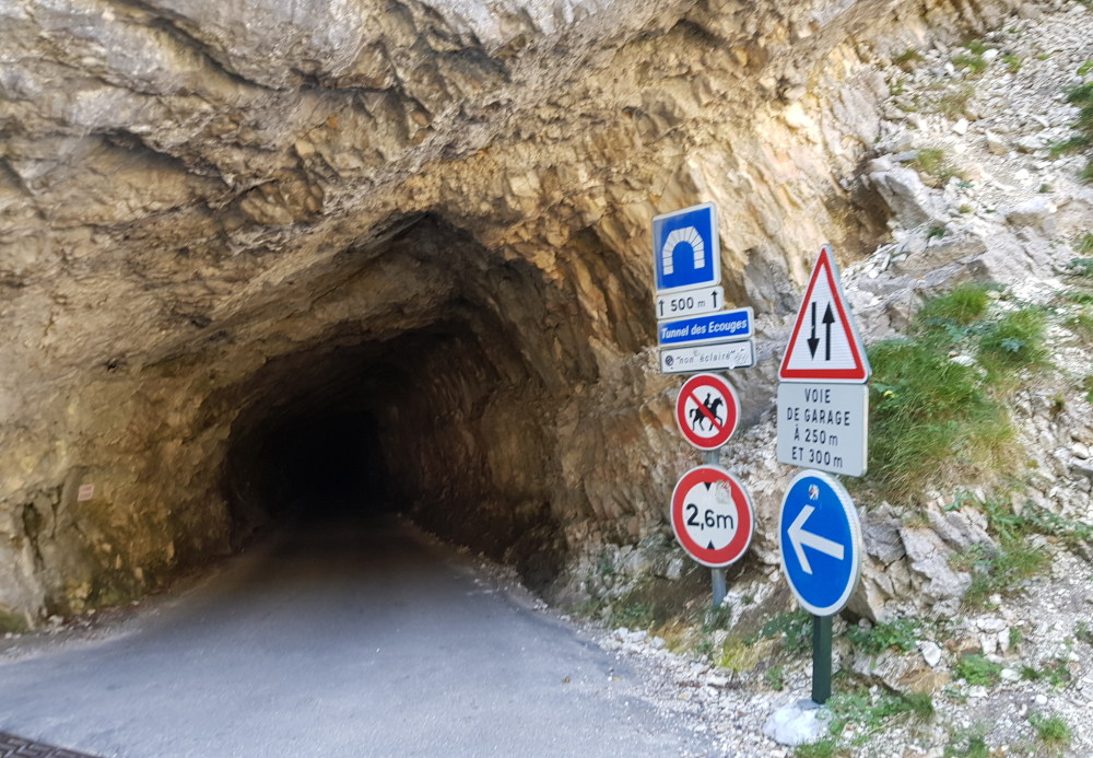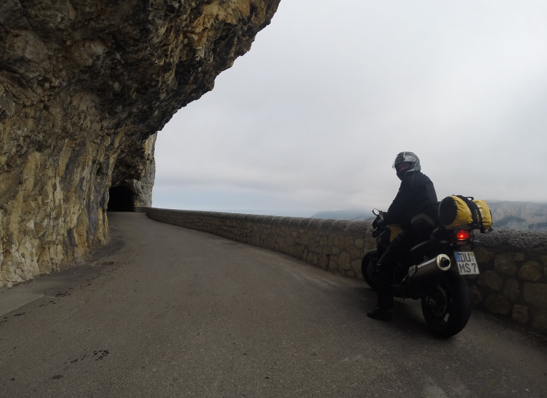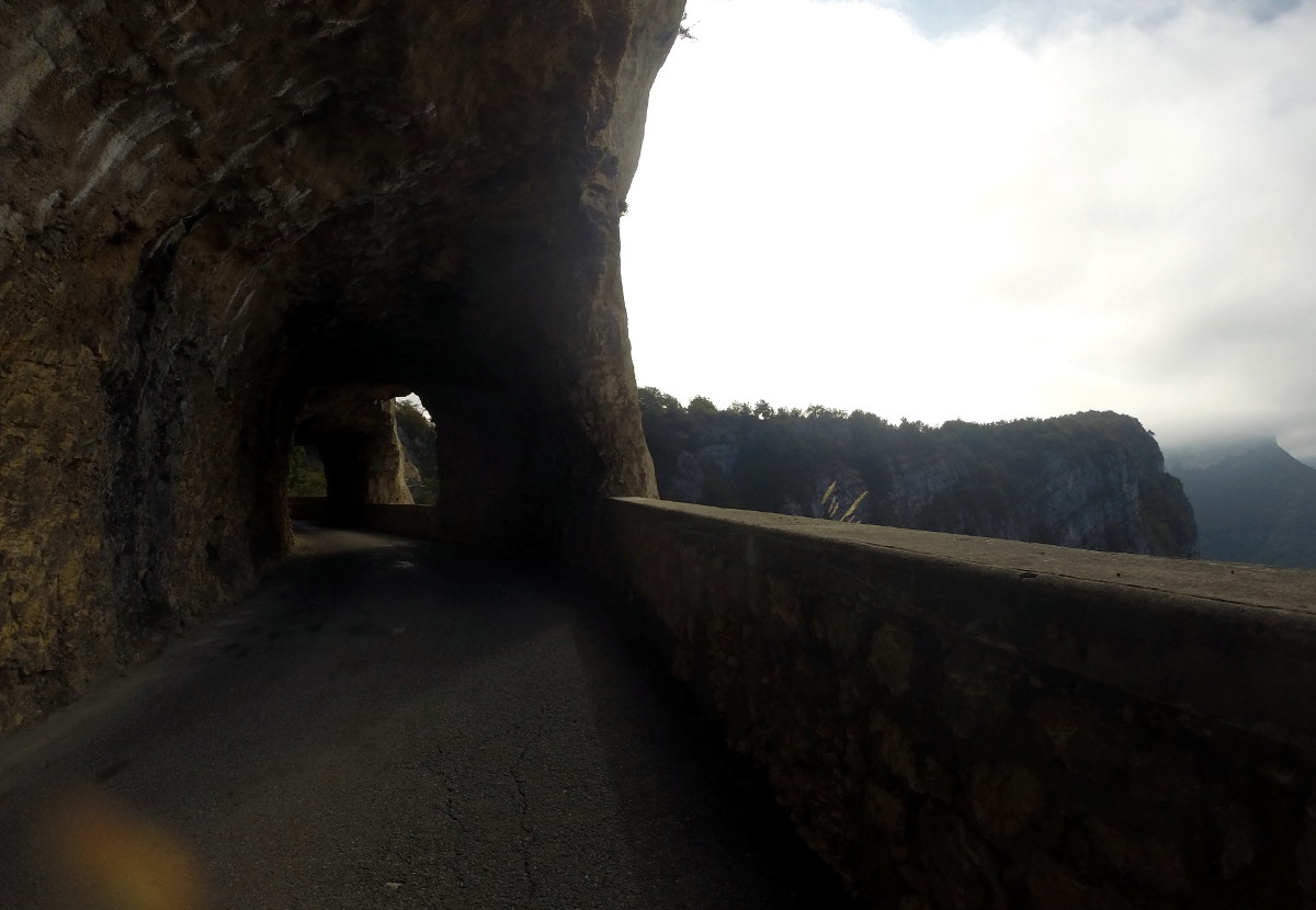 Und dass eine Straße zwischen Felsen scheinbar ins nichts führt… und dann ist da ein Loch im Felsen, und man fährt 500 Meter durch einen einsamen Tunnel. Für wen wurde der gebaut? Na, für uns natürlich!