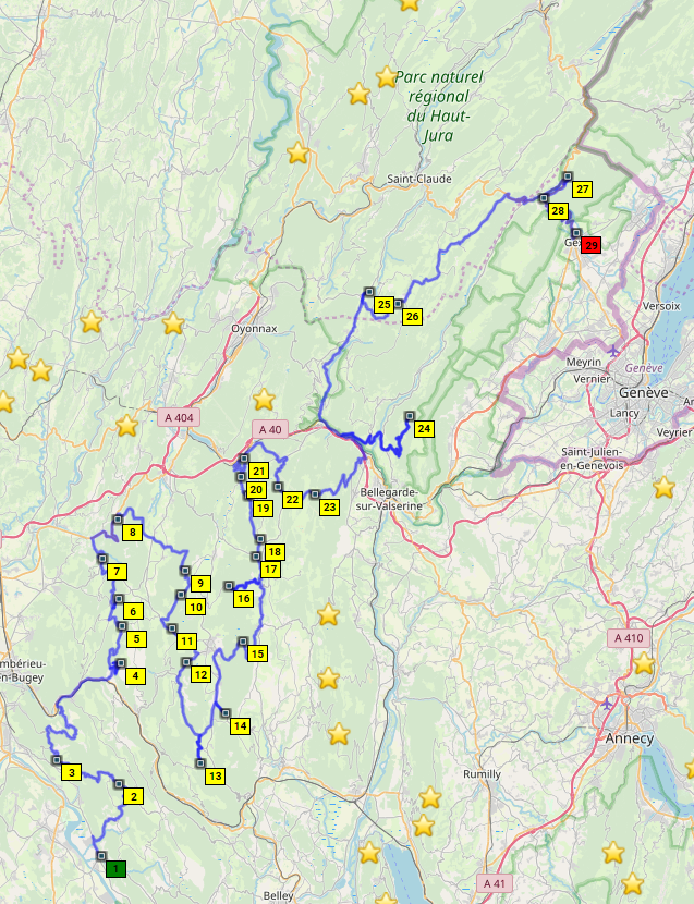 Wir hatten heute 414 km, die in Summe doch anstrengend waren. Ein paar Highlights waren dabei, aber im Chartreuse war der Straßenzustand wegen Garvillons leider eher schlecht. Dafür habe ich viel Neues gesehen und mein Passknacker-Lebenswerk gepflegt.