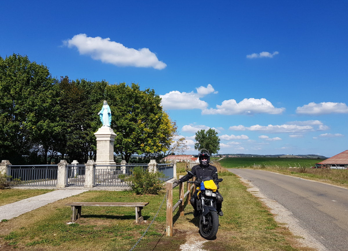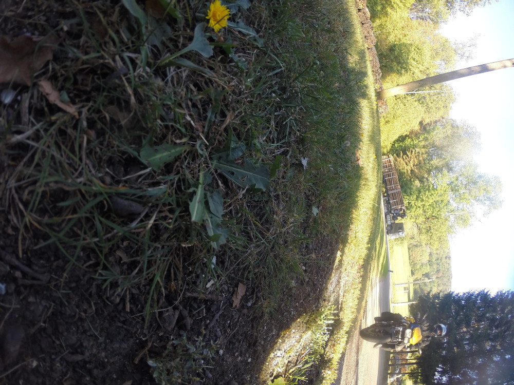 Sonntags ist natürlich mehr Motorradverkehr als ich es gewöhnt bin, und einige Sonntagsfahrer regen mich durchaus auch auf. Ich bin nicht mehr in Frankreich und sollte auch nicht mehr so fahren. Damit rechnet hier niemand und auch der Führerschein ist in Gefahr, nicht nur der Geldbeutel. Erfreulich ist dagegen das Wetter. Nach den ersten 15 Minuten ist es völlig trocken und hat genau die richtige Temperatur.