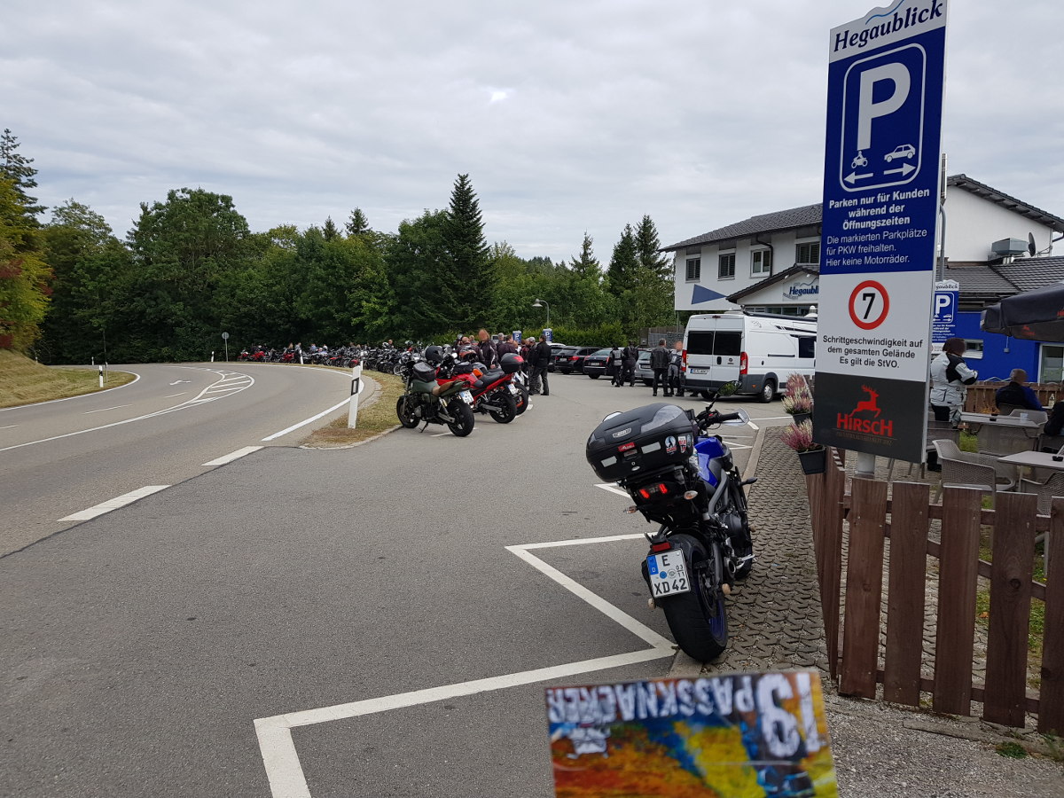 Es sind sogar zwei Bikertreffs gleichzeitig Passknackerpunkte. Wegen gutem Wetter sind viele andere Moppeds unterwegs, wobei die Hardware höherwertig als in der alten Heimat Ruhrpott ist. Italienische Marken sind stärker vertreten.