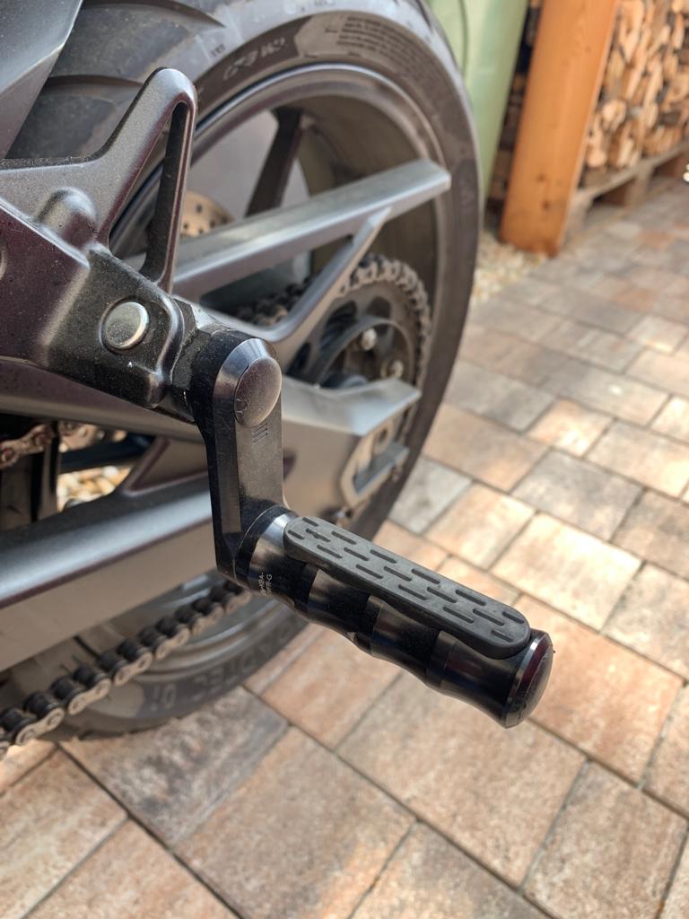 Ich habe diese Vario Fussrasten verbaut. Bei mir sieht das so aus.