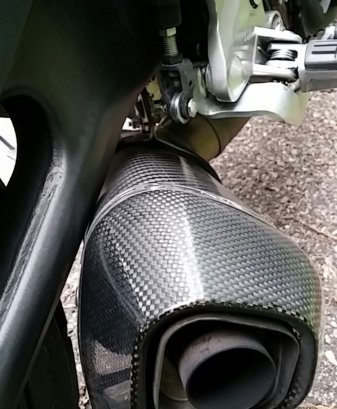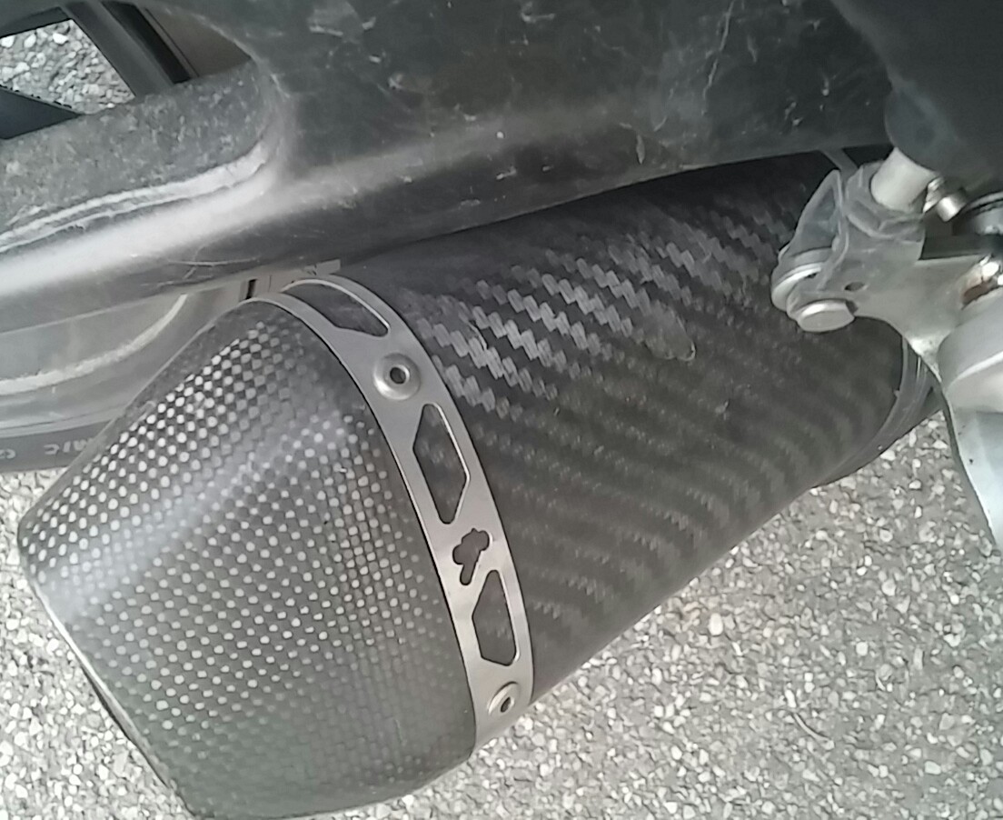 Er ist ganz sicher richtig drauf, das haben wir im 07ener Forum schon lang und breit getreten. Bei anderen setzt er auch auf. Die Fotos sind schon älter, inzwischen ist die Abschürfung schon über die Niete hinaus. Ohne Belastung liegt der Topf an der Schwinge an. Wenn ich drauf sitze ist nicht ganz ein 1cm Spielraum. Wenn ich zu tief in Rechtskurven gehe spüre ich es ganz deutlich. Ich rechne schon immer damit dass es mich jeden Moment aushebeln könnte.