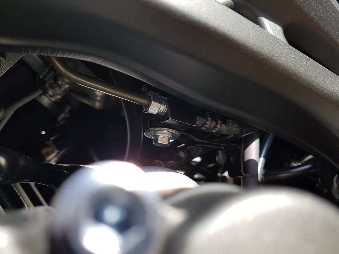 Als ich los wollte ein Benzinfleck unter der Maschine. Hab sie gleich aus der Halle raus geschoben und dabei hat sie noch getropft.