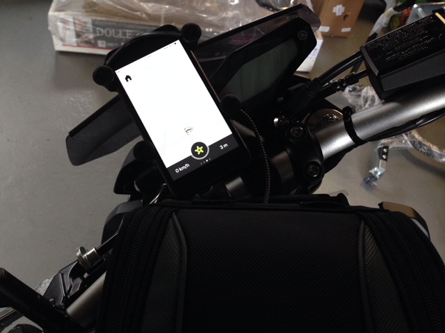 In meinem Tankrucksack ist jetzt eine PowerBar drin, die das Handy mit Strom versorgt. Und Ansagen kommen jetzt über mein SENA Intercom (Bei mir das SENA 10U da ich einen Shoi GT Air Helm habe) im Helm.Fotos folgen...