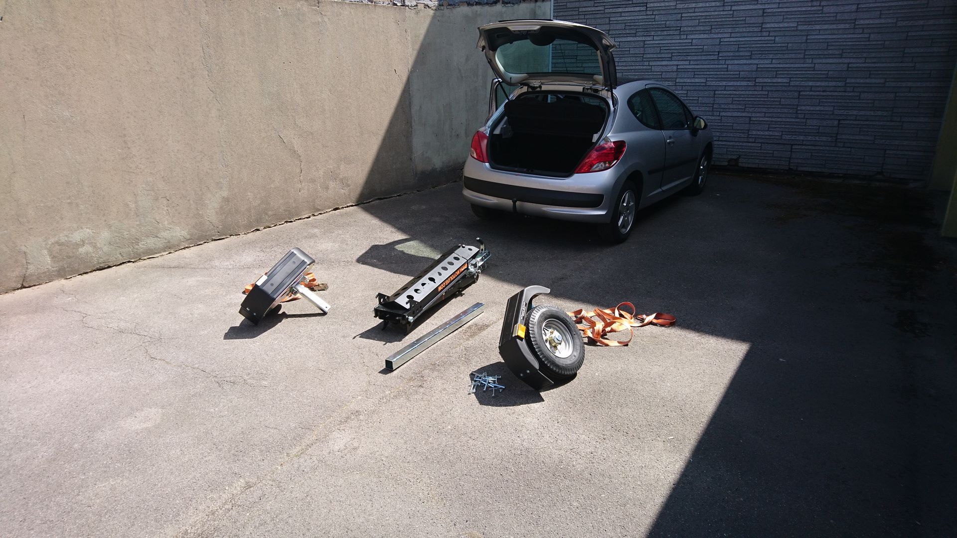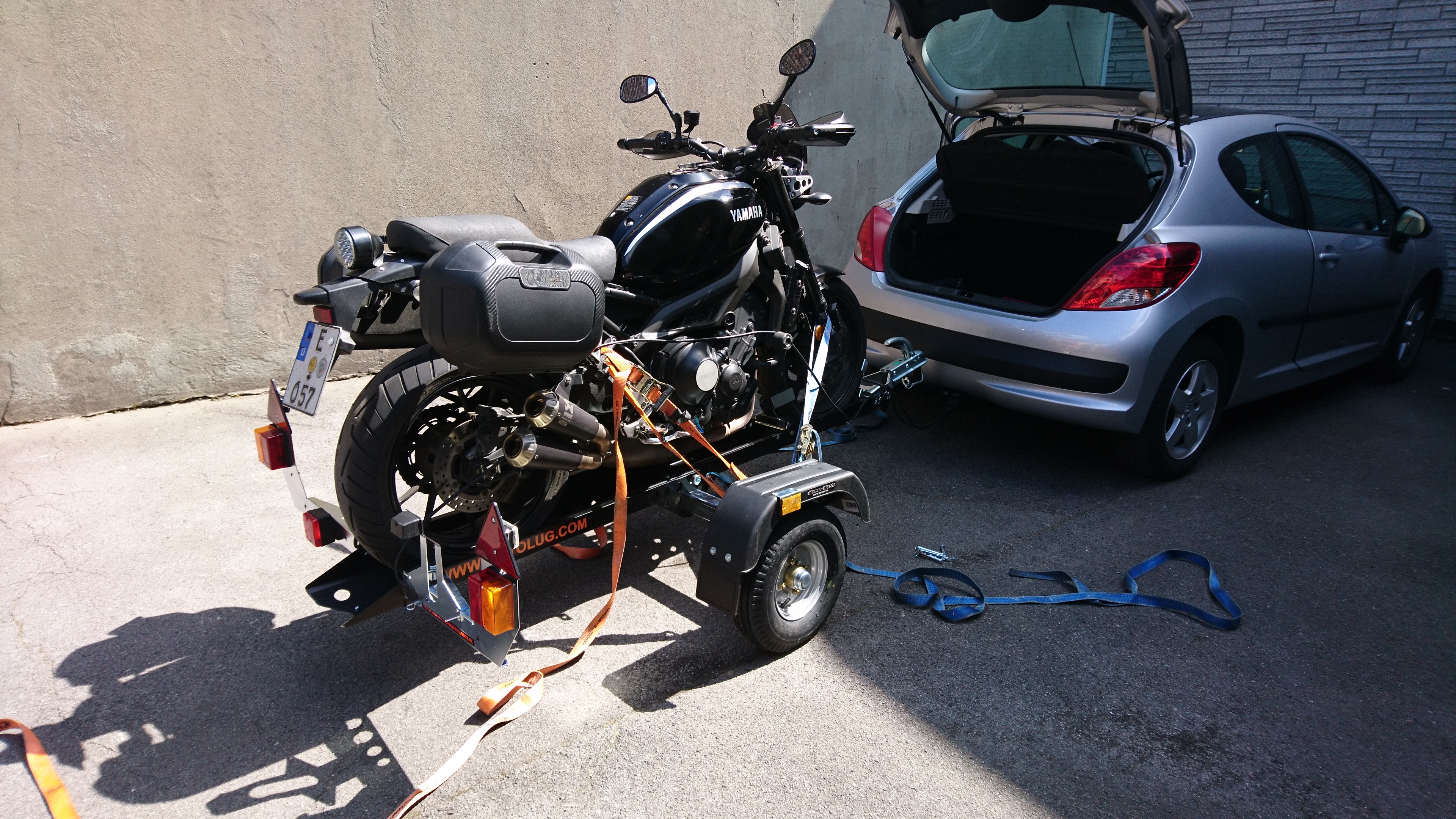 So, Montag kamen drei größere und schwerere Päckchen und heute ist er schon angemeldet. Heute hab ich mal alles zusammengebaut, Mopete drauf gefahren und verzurrt und hab beim ersten Mal ca. 30 Minuten gebraucht. Ich denke es wird sich auf die Hälfte reduzieren. Sehr geil. Mit ein wenig Glück wird er am Wochenende ausgetestet.